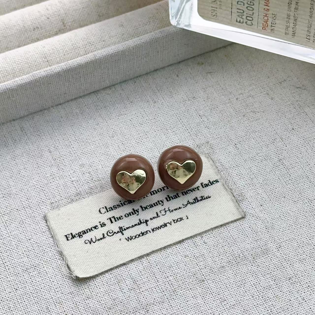 • 브라운 라운드 러브 스터드 귀걸이