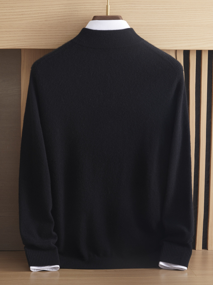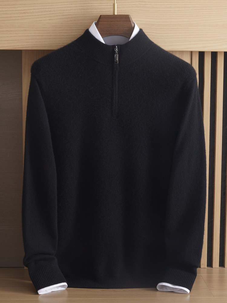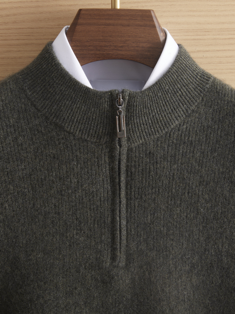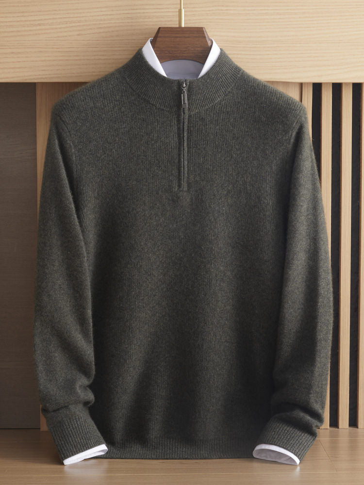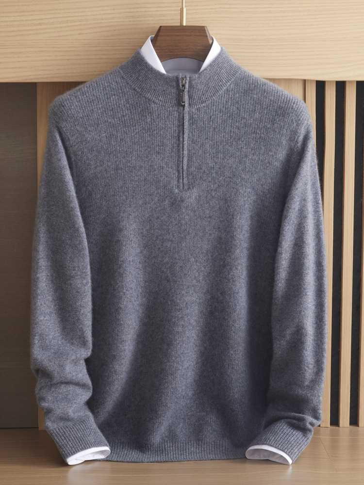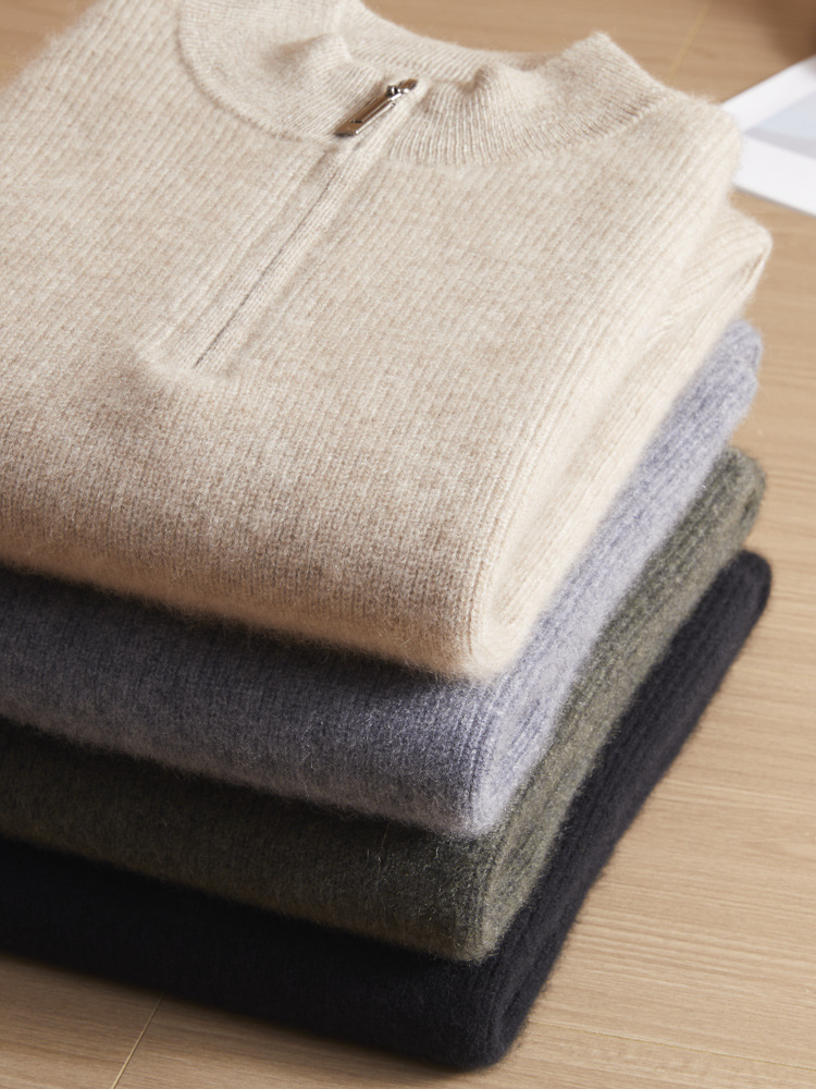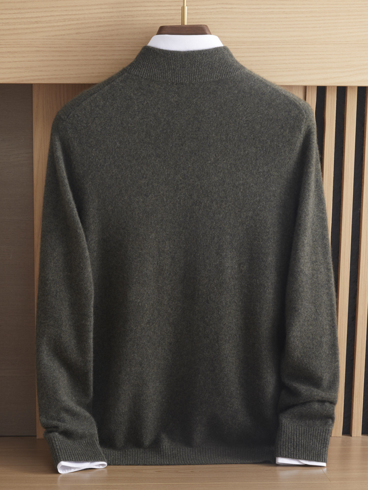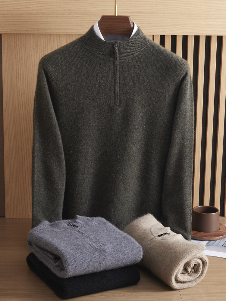 가을과 겨울 새로운 100 순수 산 캐시미어 스웨터 남성용 두꺼운 스웨터 느슨한 슬리밍 탑 캐주얼 하프 지퍼스토어 가기