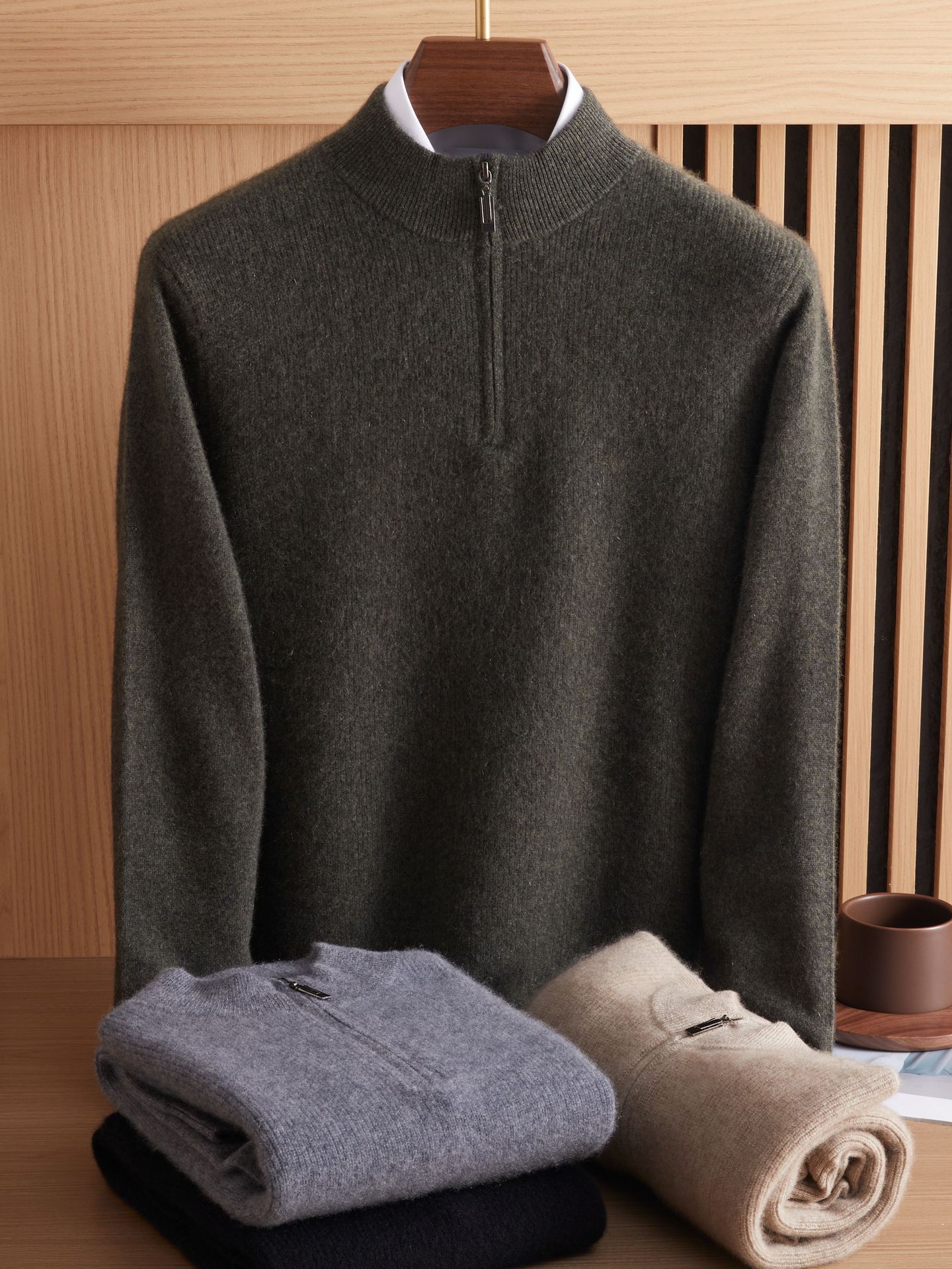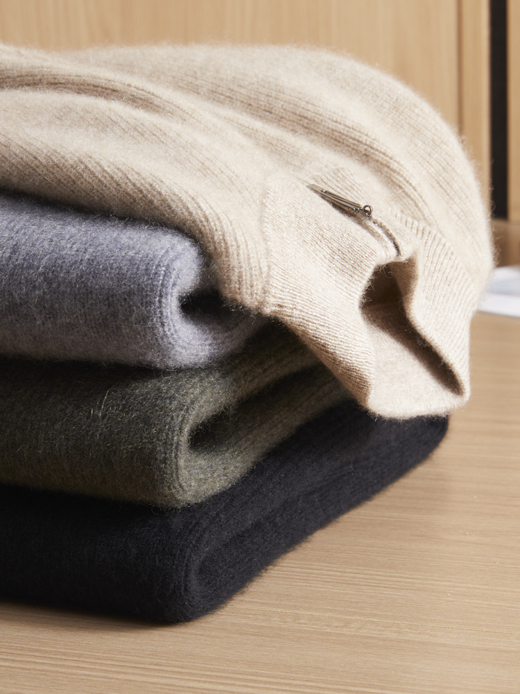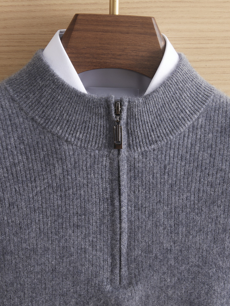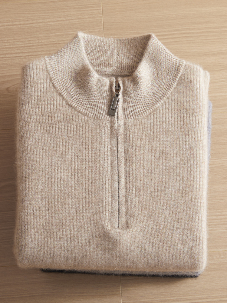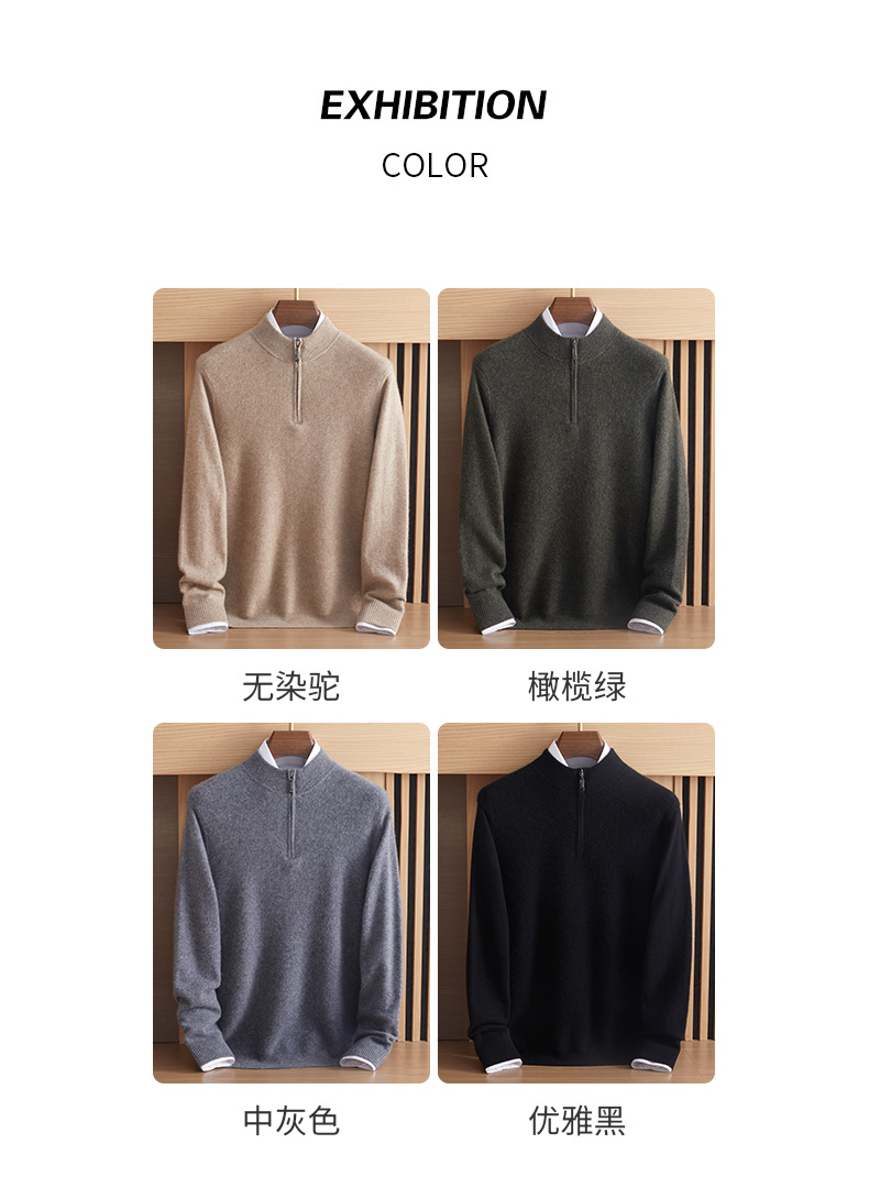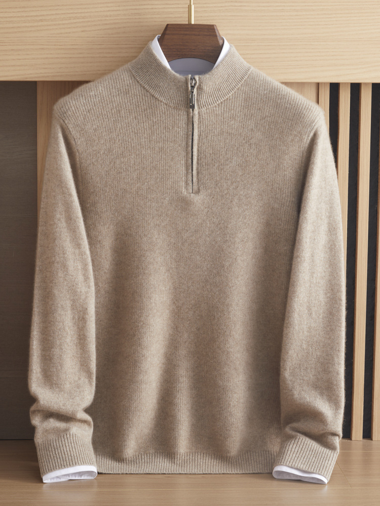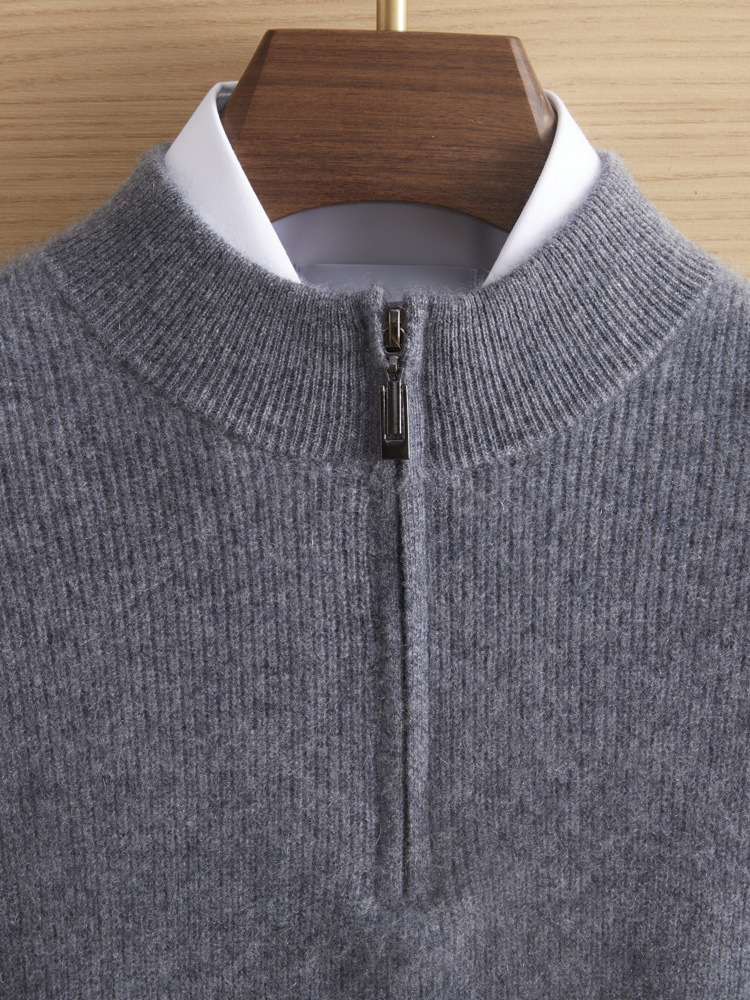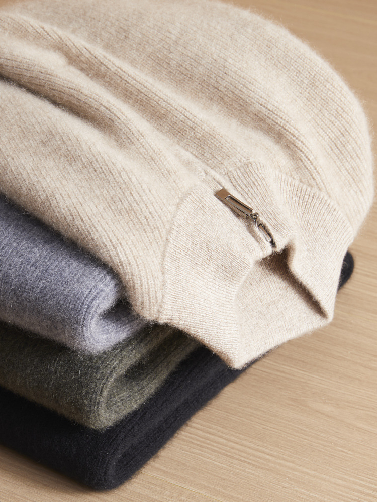 가을과 겨울 새로운 100 순수 산 캐시미어 스웨터 남성용 두꺼운 스웨터 느슨한 슬리밍 탑 캐주얼 하프 지퍼스토어 가기