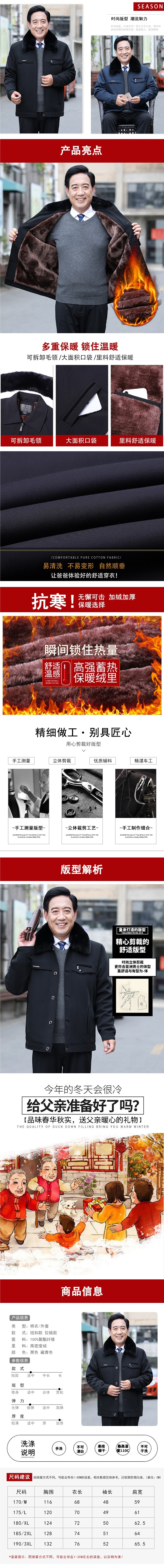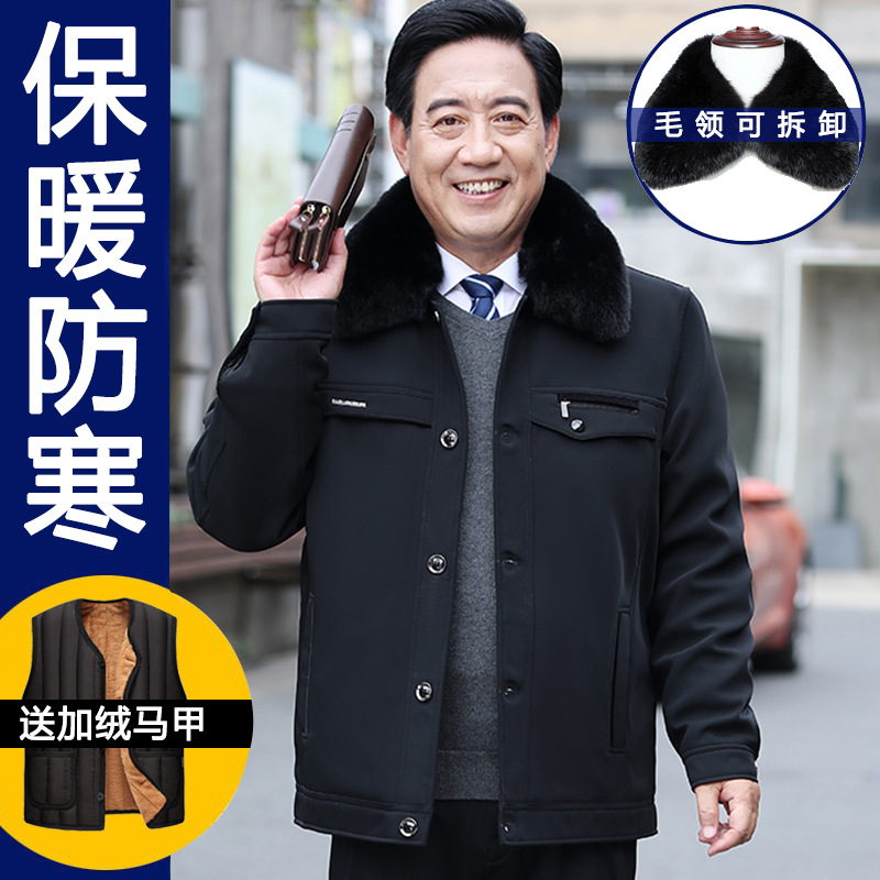 아빠의면 패딩 코트 남성용 겨울은 기모 따뜻한 80 세 할아버지의면 패딩 재킷 70 중년 및 노인면 패딩 재킷