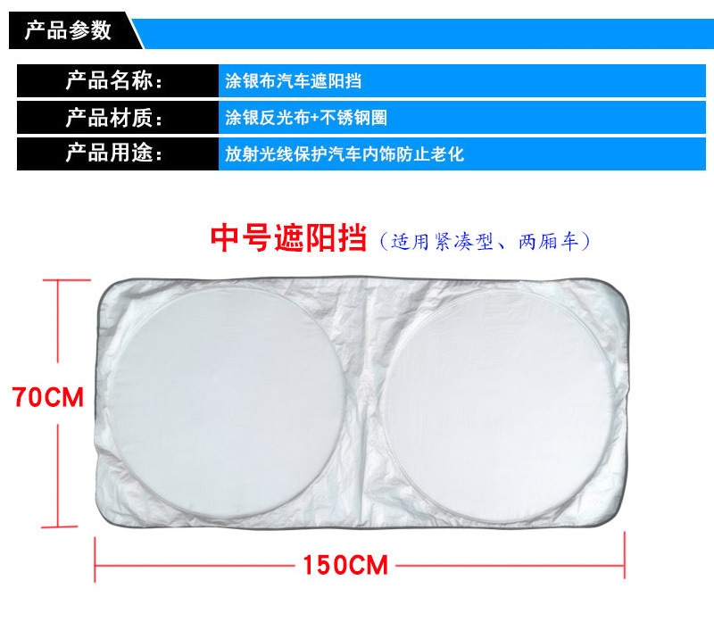 자동차 태양 바이저 여름 더블 링 새로운 실버 코팅 천 태양 바이저 프론트 쉴드 나일론 태양 우산 단열재를 피하도록