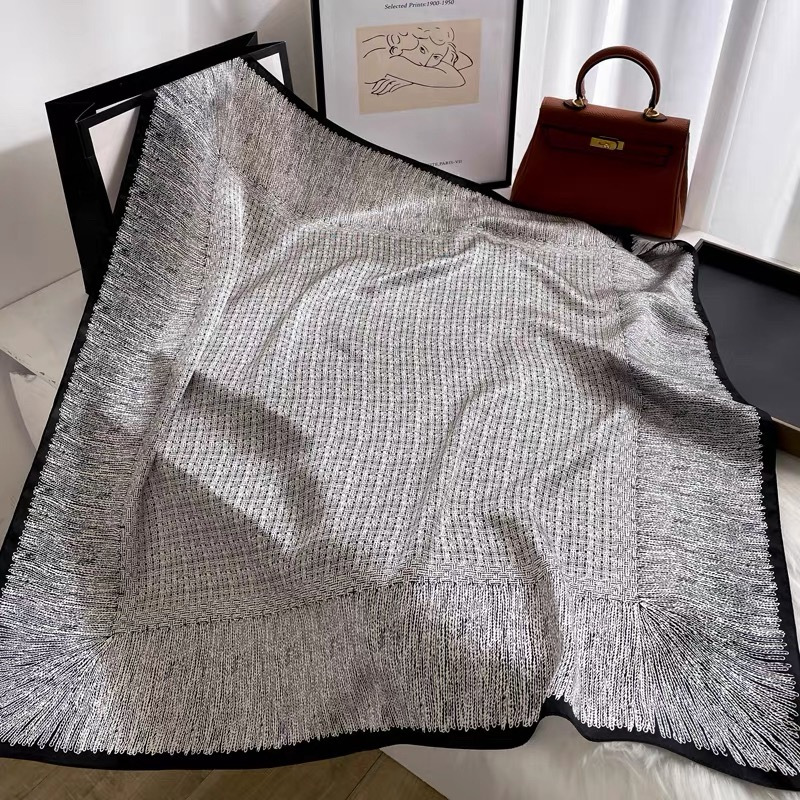 100 뽕나무 실크 [향기로운 회색 86 실크 스퀘어 스카프] 크레페 새틴 하이 엔드 실크 스카프 목도리 스카프
