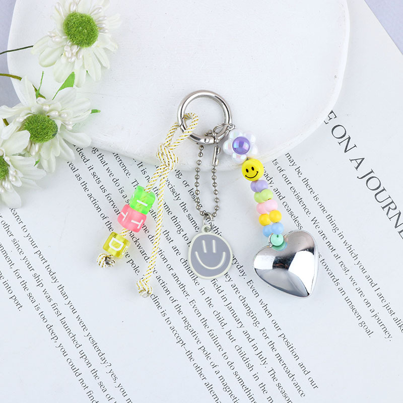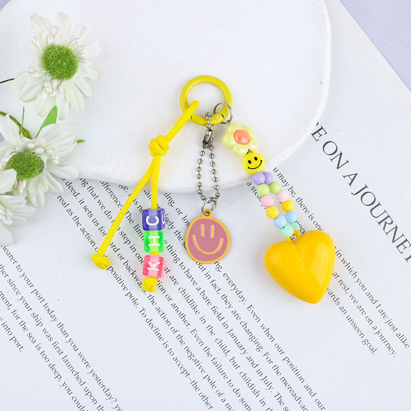 한국식 miu 스타일 캔디 컬러 사랑 웃는 얼굴 키 체인 작은 신선한 DIY 창조적 인 펜던트 가방 전화 케이스 올 매치스토어 가기