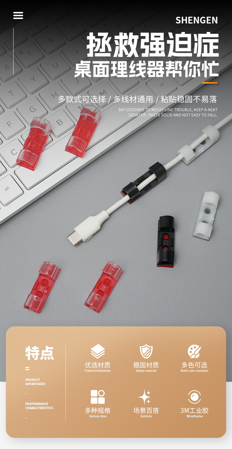 벽면 및 책상 아래 케이블 정리기, 접착식 전선 고정기, 자가 접착식 클립, 케이블 관리용 접착식 정리기