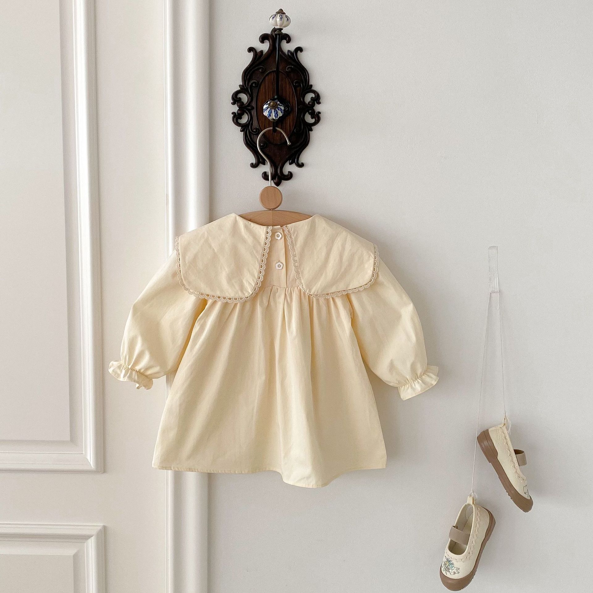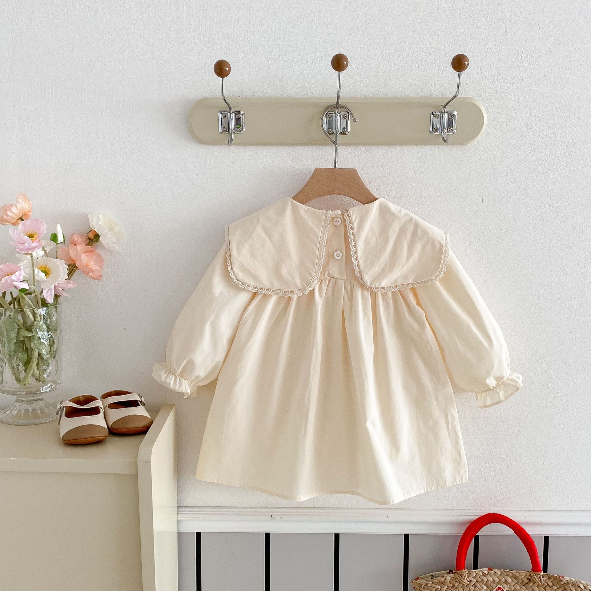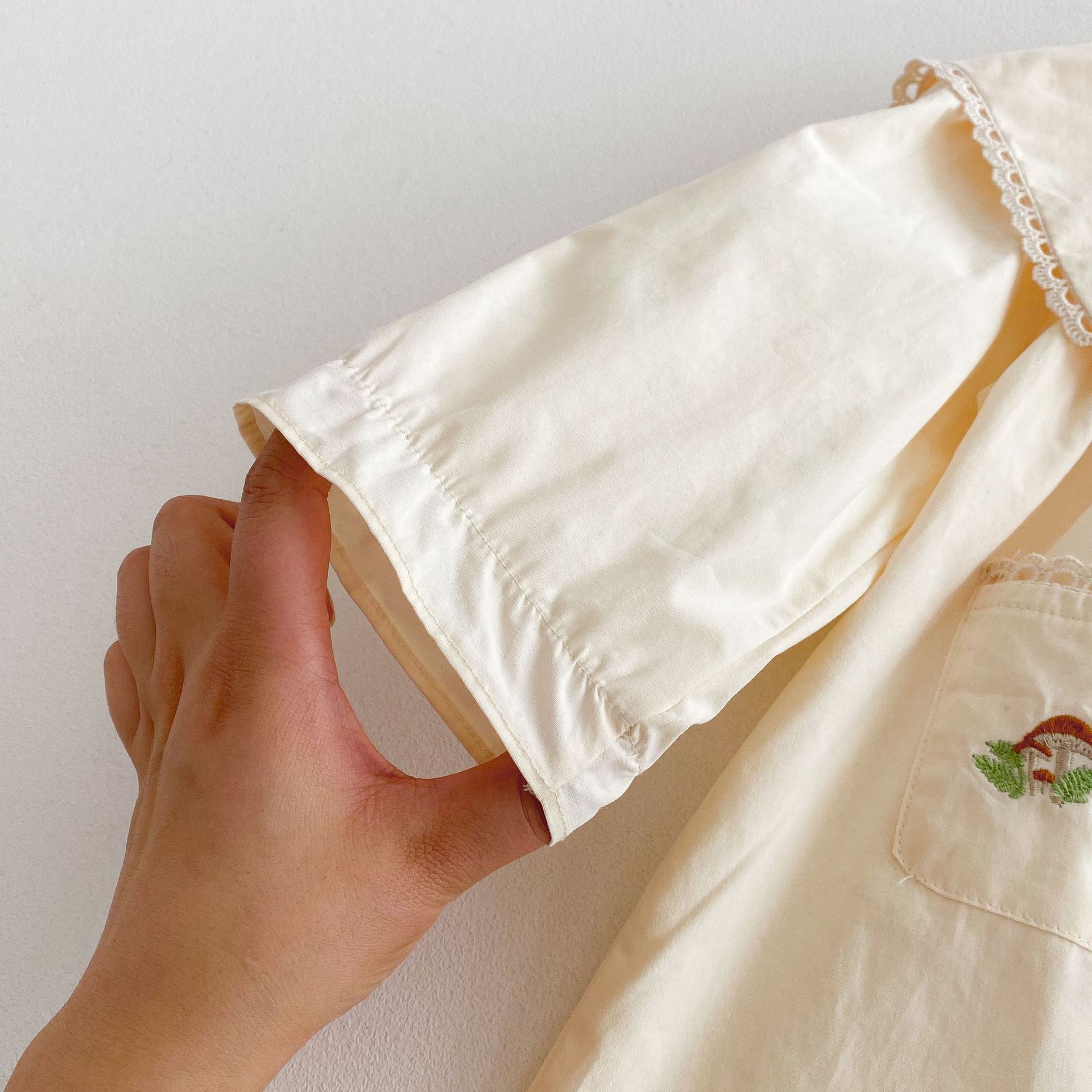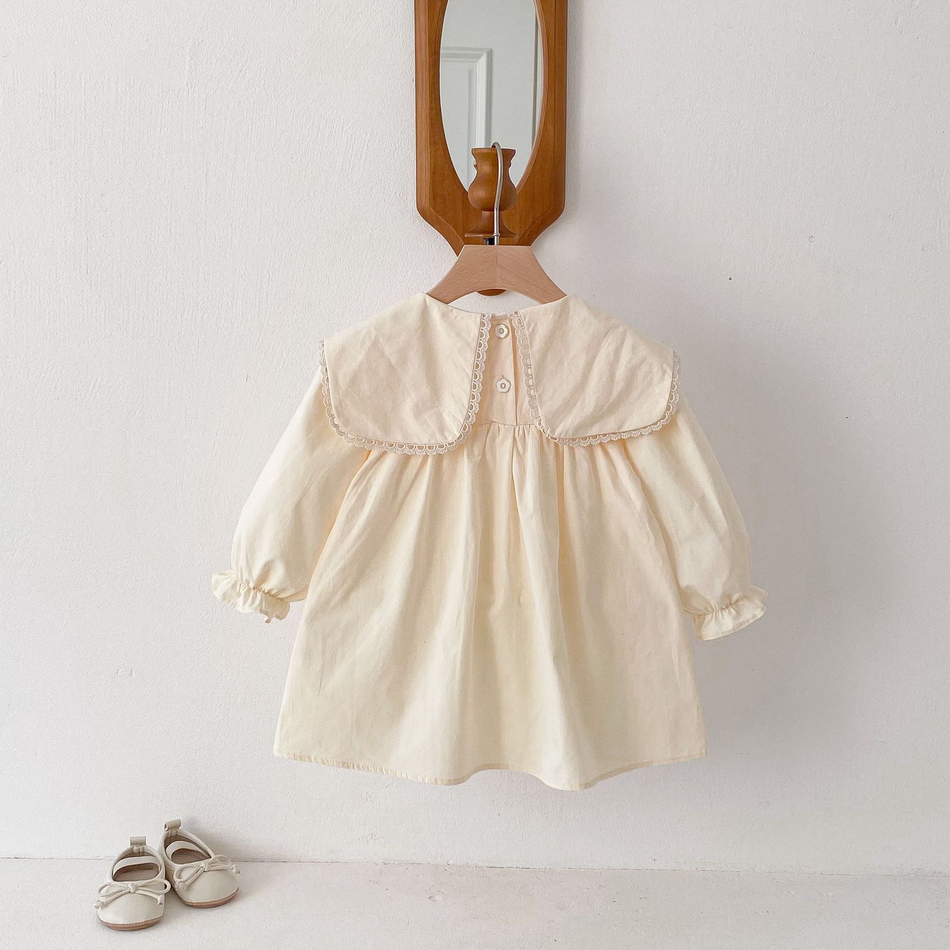 봄 2025 새로운 만화 토끼 수 놓은 한국 스타일 소녀의 원피스 옷깃 포켓 버섯 원피스스토어 가기