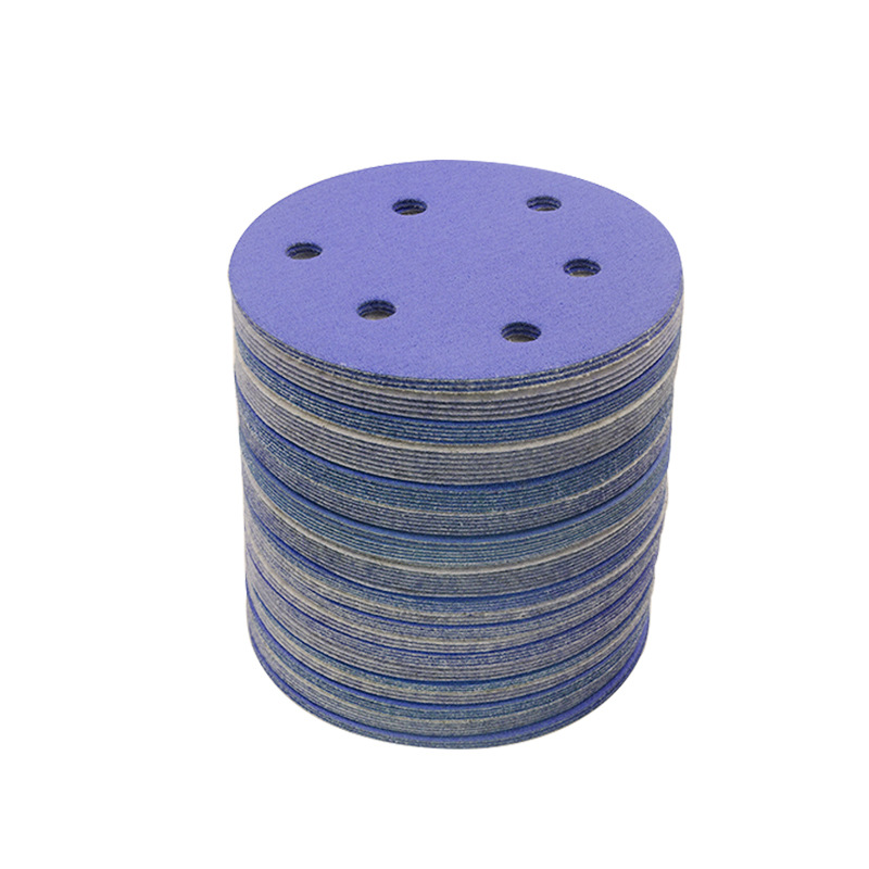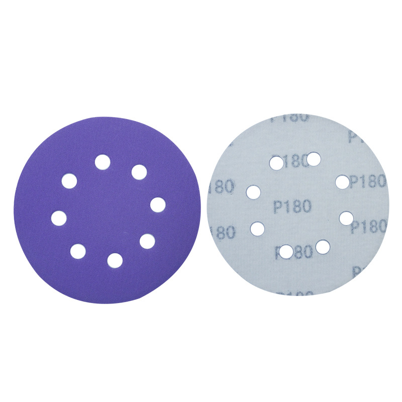 맞춤형 5인치 6홀 건식 연마 보라색 사포 세라믹 보라색 모래 플로킹 접착 연마 시트 연마용 5인치 8홀 디스크 사포