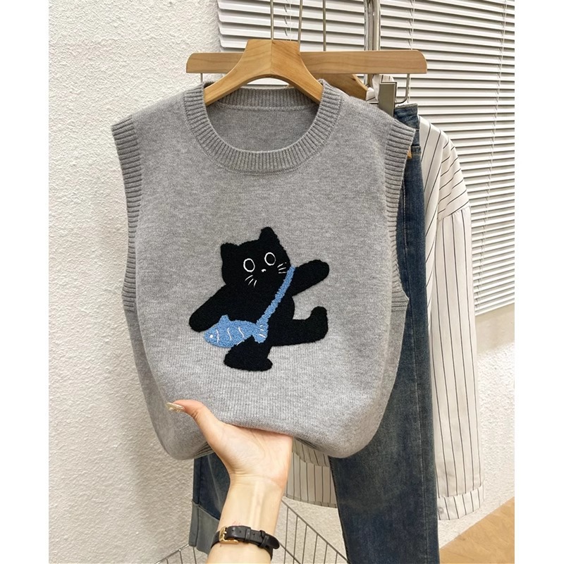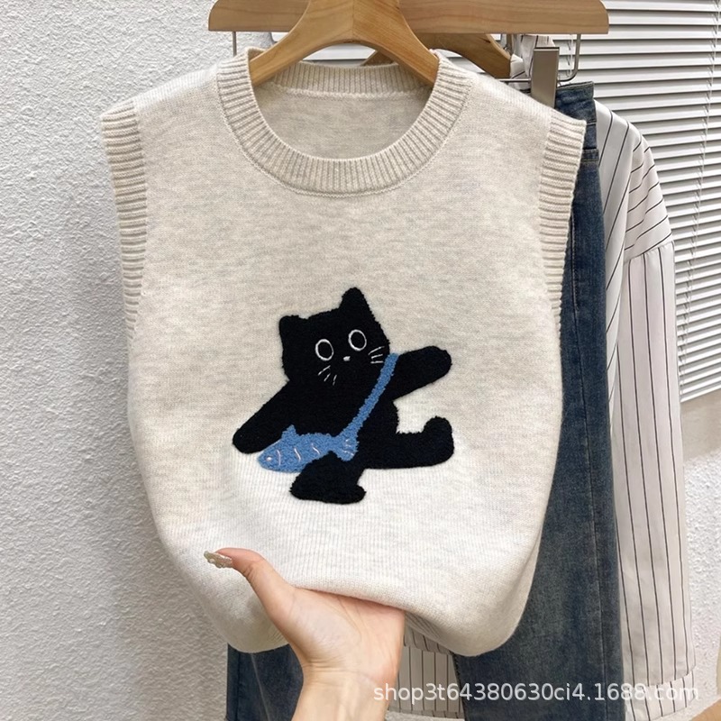 겹쳐 입는 젊어 보이는 스웨터 조끼 여성용 이너웨어 2025 가을 겨울 신상 루즈핏 아우터 숏 니트 조끼스토어 가기
