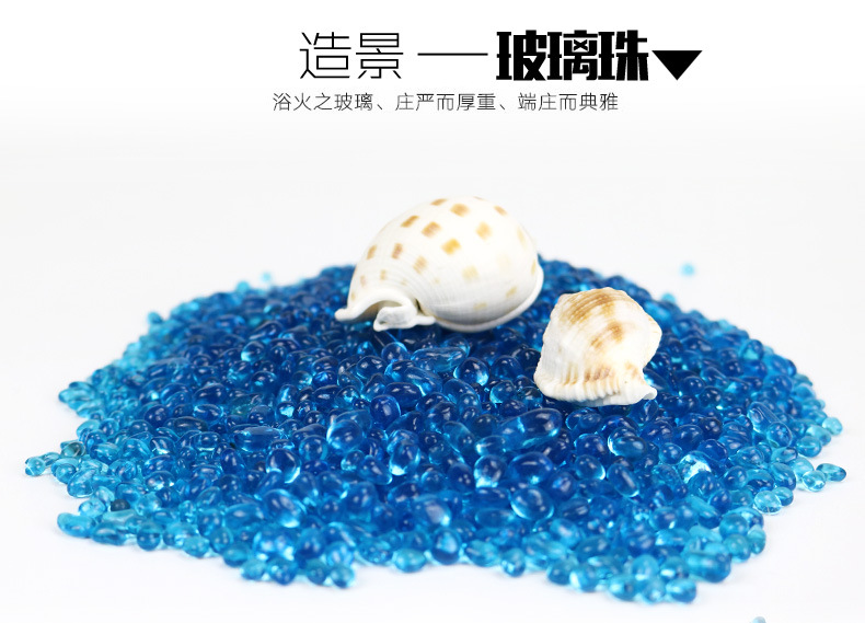 국경 간 유리 모래 수조 장식 및 조경, 파란색 유리 구슬 수족관 액세서리, 흰색 모래, 컬러 조경 스톤 바닥 모래