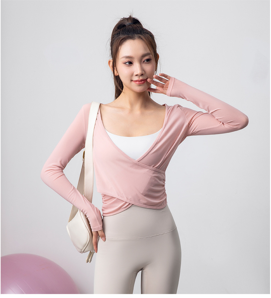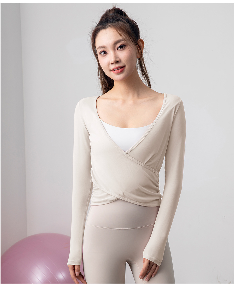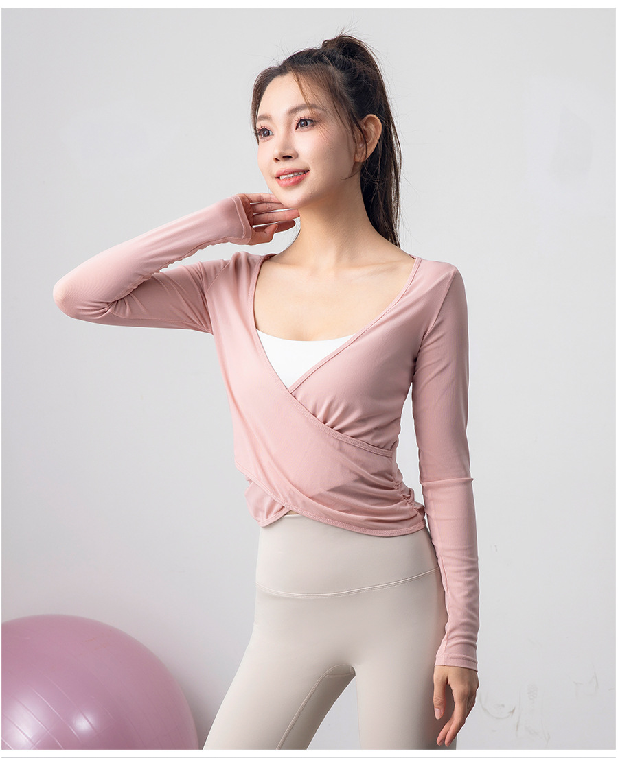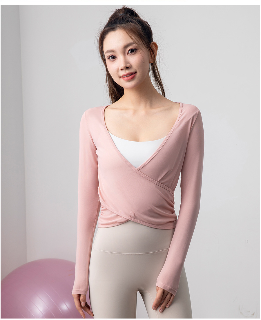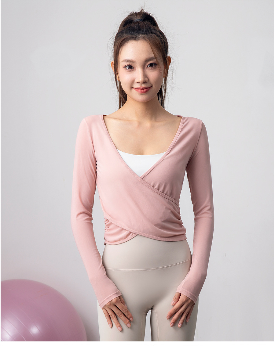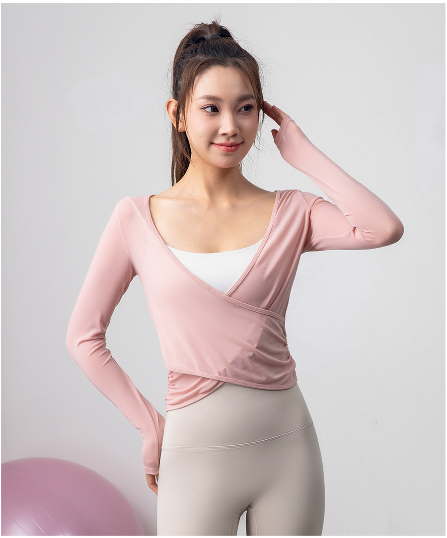 2025 새로운 섹시한 메쉬 요가 착용 스포츠 탑 우아한 슬림 블라우스 필라테스 피트니스 긴 소매