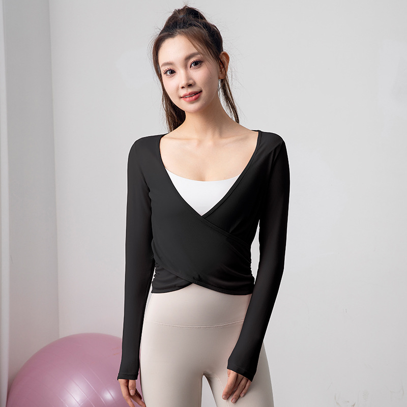 2025 새로운 섹시한 메쉬 요가 착용 스포츠 탑 우아한 슬림 블라우스 필라테스 피트니스 긴 소매스토어 가기