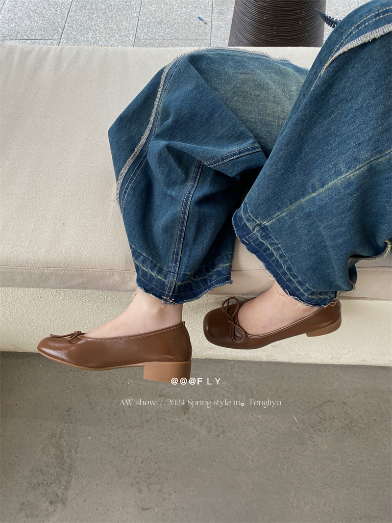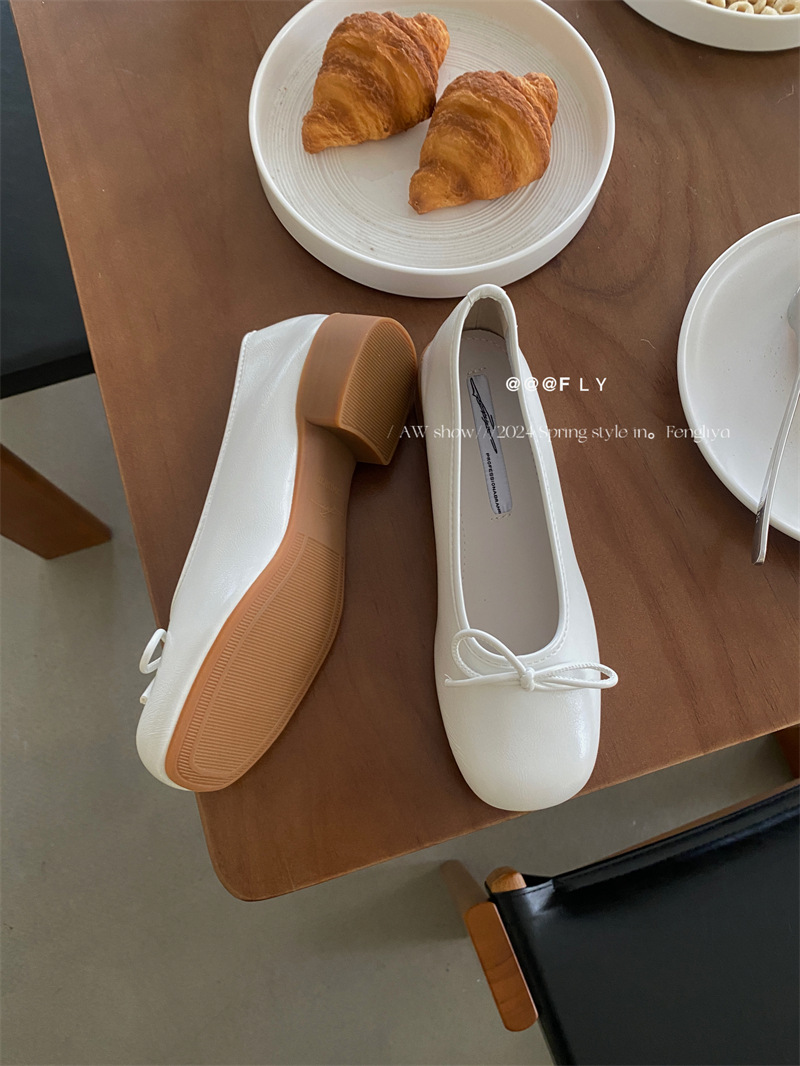 Fengliya 화이트 메리 제인 신발 2024 봄 새로운 올 매치 두꺼운 힐 젠틀 늦은 저녁 스타일 기질 싱글 레이어 신발 여성 신발스토어 가기