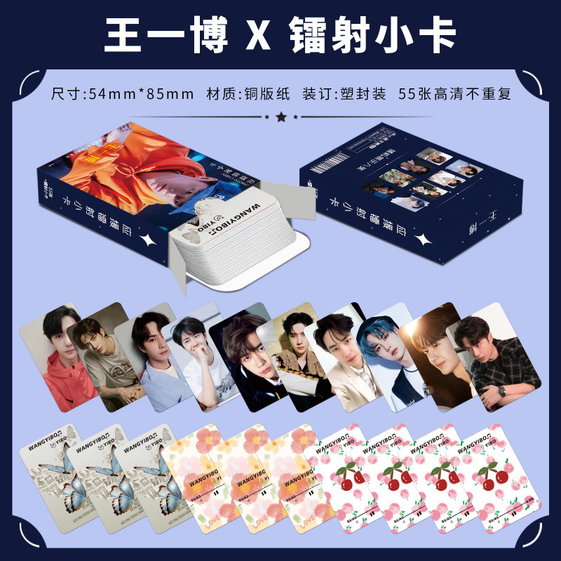 • Wang Yibo 레이저 포토 카드 56장/상자에는 카드 스티커가 함께 제공됩니다.