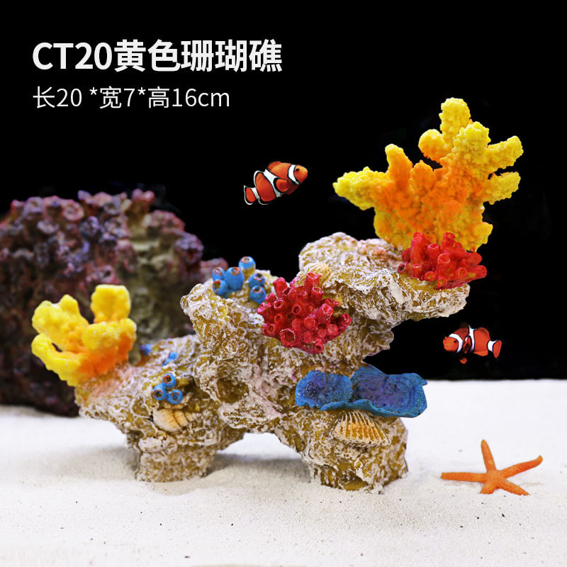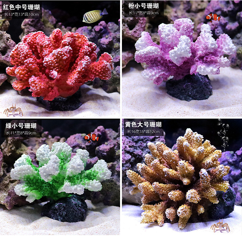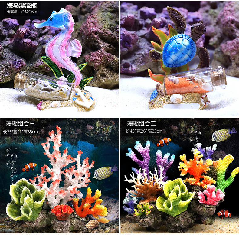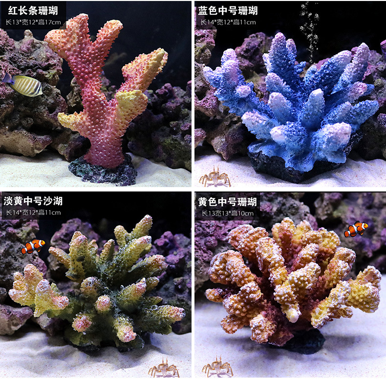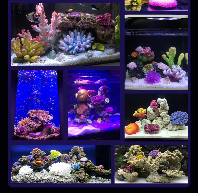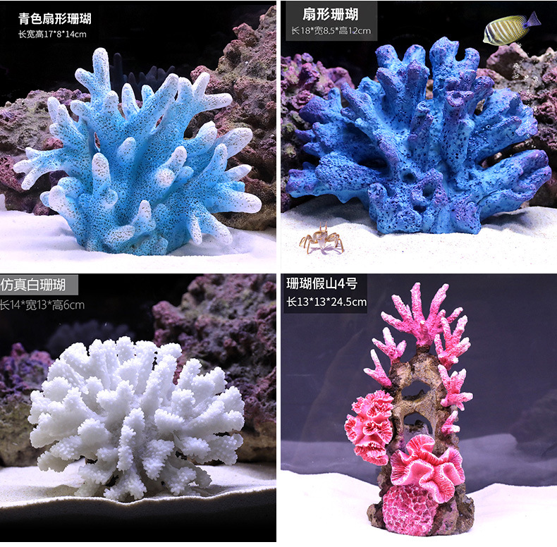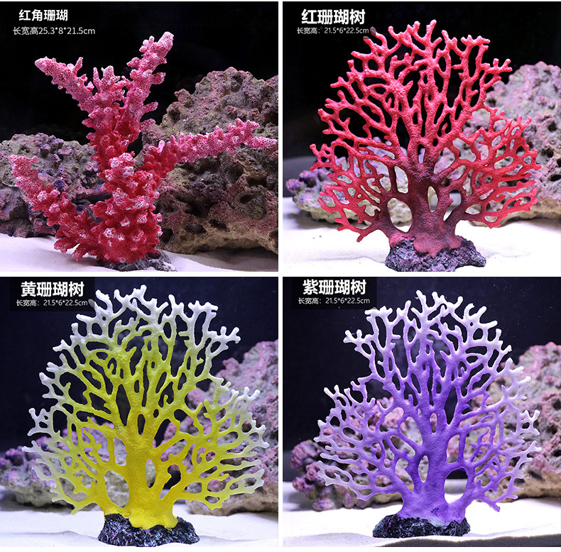 국경을 넘는 작은 수조 시뮬레이션 가짜 산호 나무 조경 세트 가짜 바위 수생 식물 장식 해수 탱크 세트 물고기와 새우 피난처