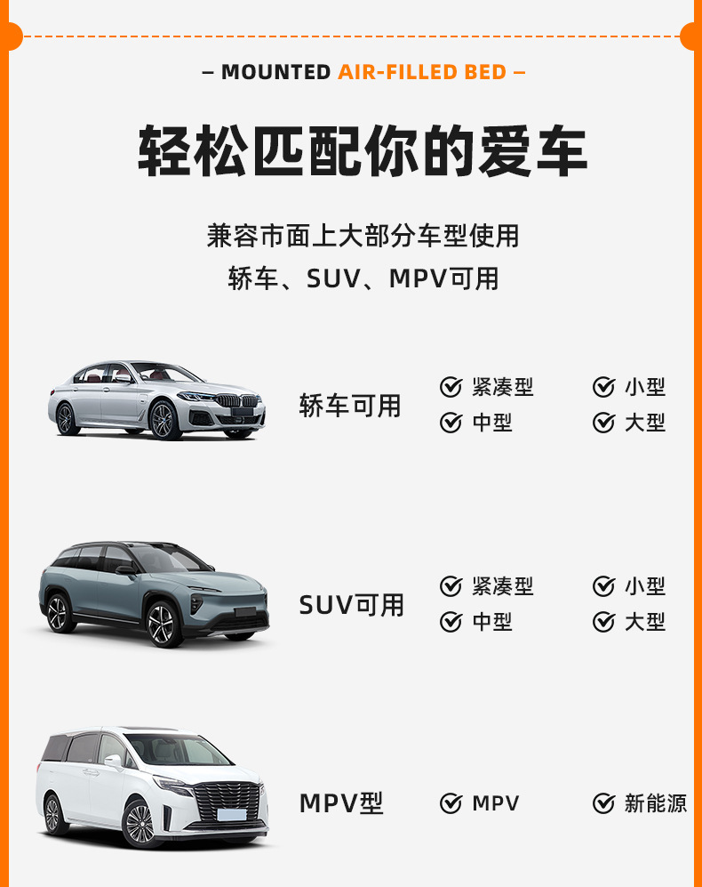 适用车型:五座汽车通用(后桥特别高及微小型不能用)