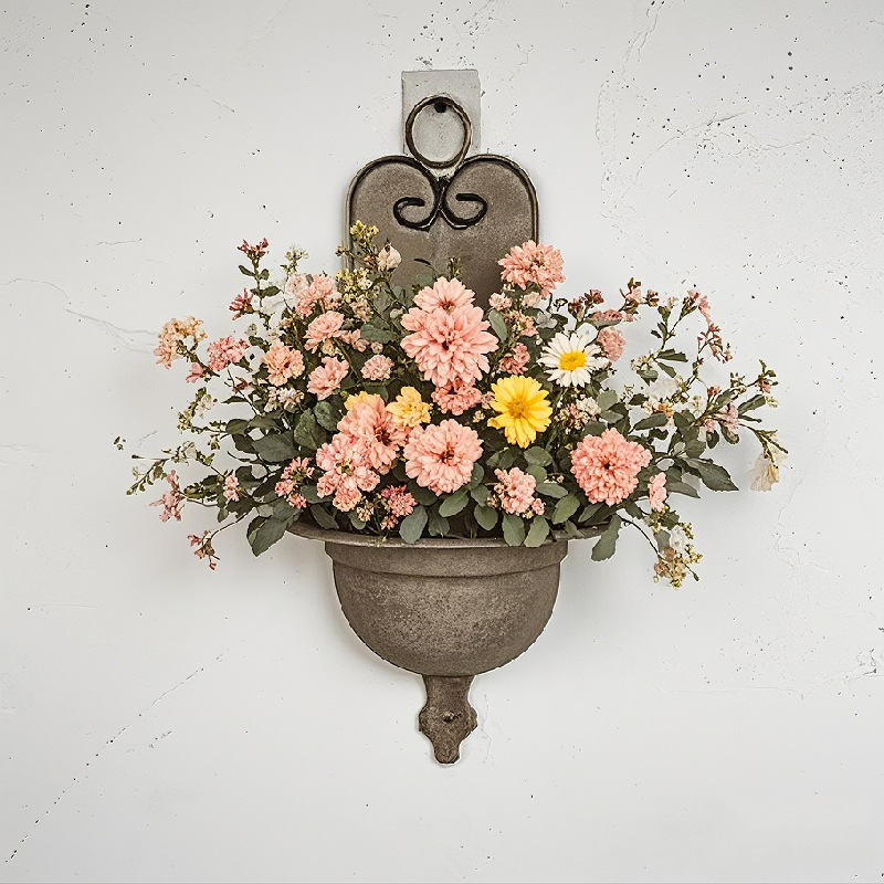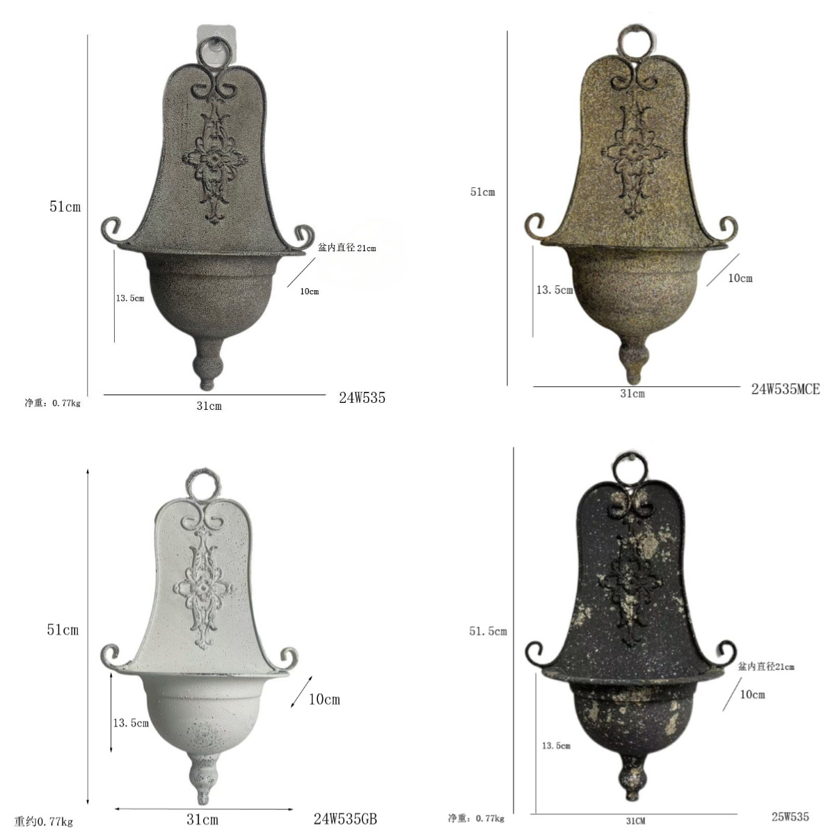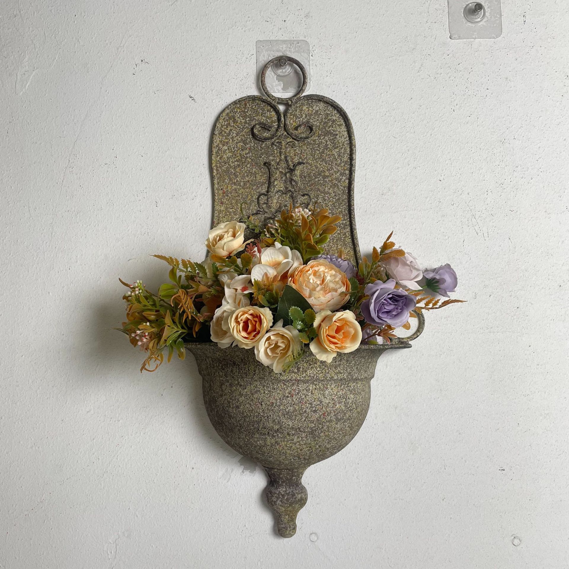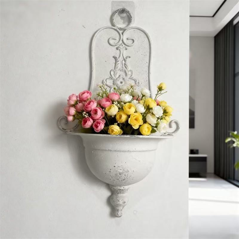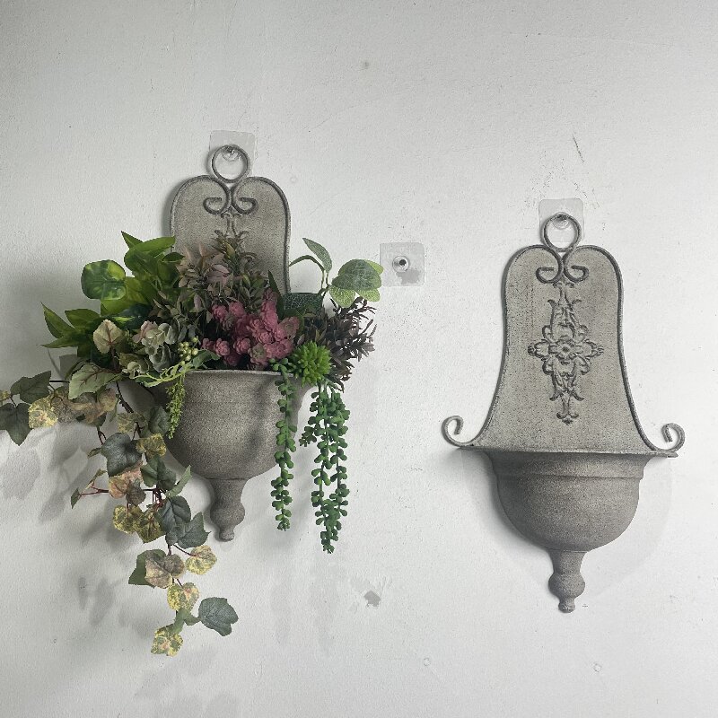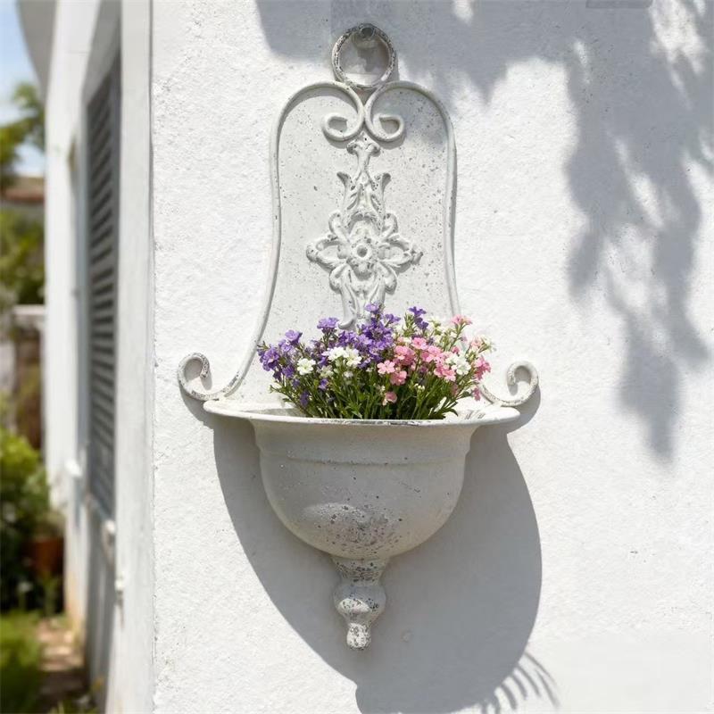 프랑스풍 레트로 벽걸이 화분, 시골풍 철제 벽걸이 꽃바구니, 빌라 정원 녹색 식물 화분, 마당 장식용 걸이 화분