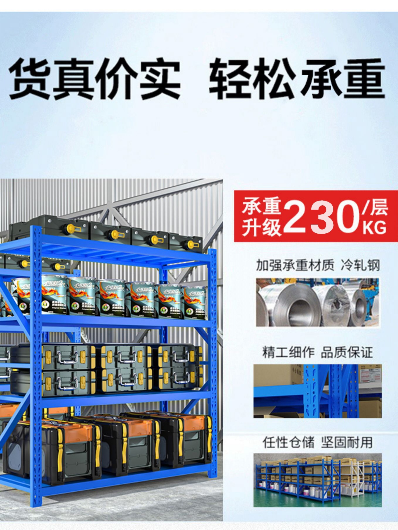 • 헤비 듀티 두꺼워진 200*80*250=각 레이어 800KG-블루 메인 프레임(4개 레이어)
