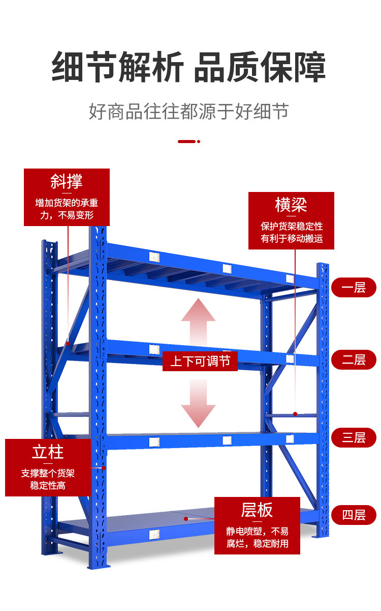 • 두꺼운 중간 크기 150*60*200=각 레이어 280KG-블루 서브 프레임(4개 레이어)