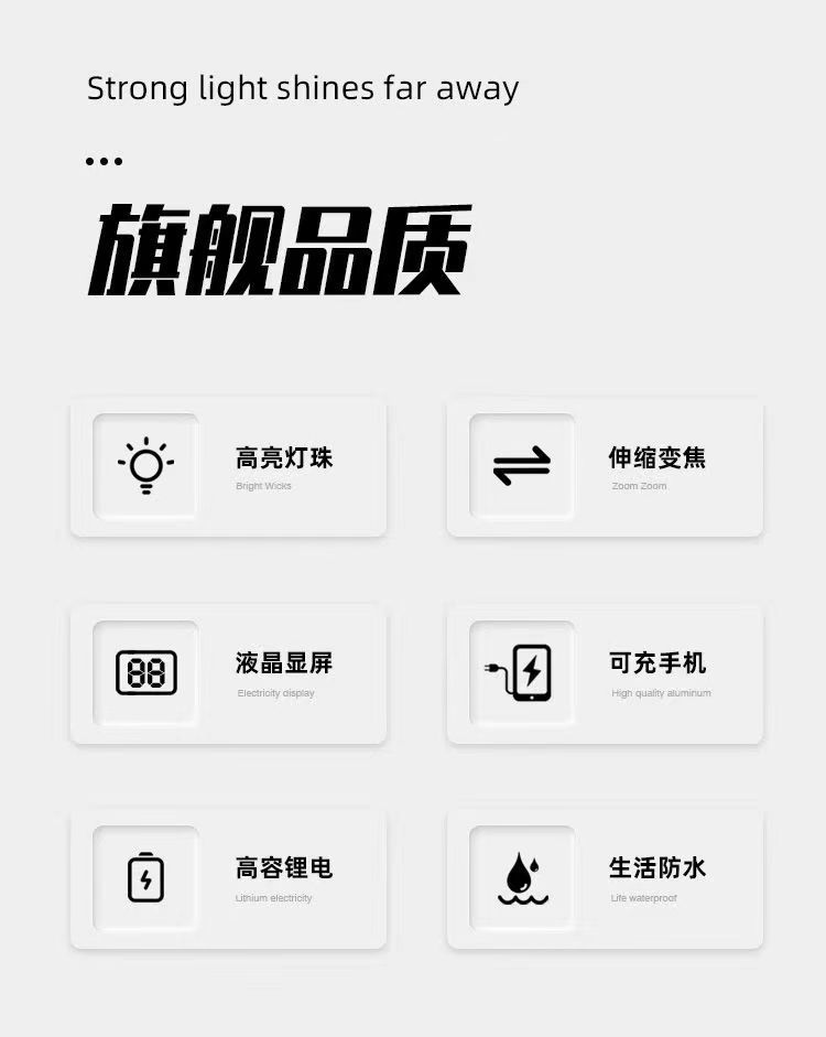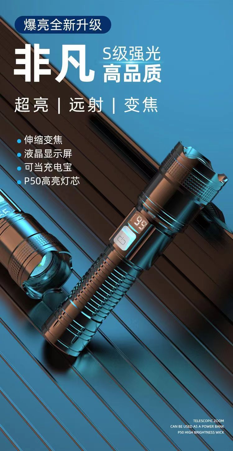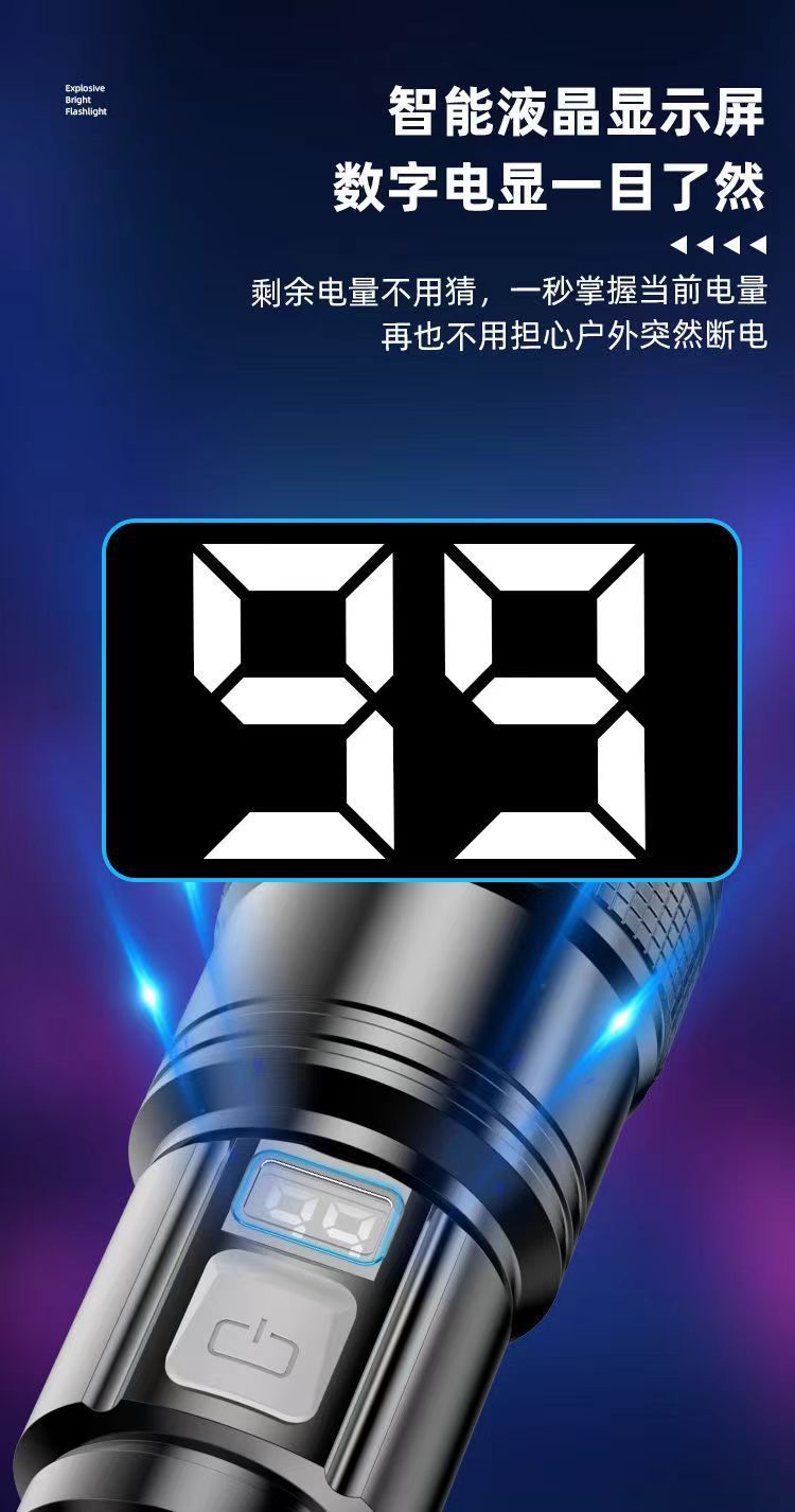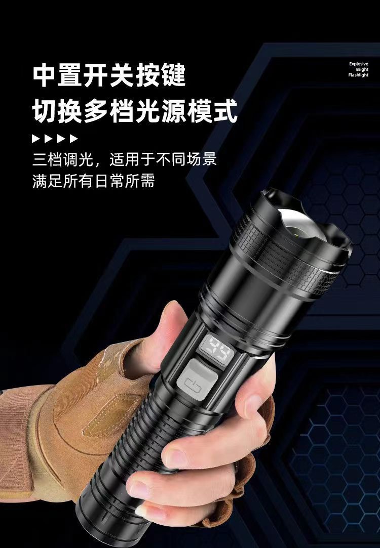 다기능 손전등 충전식 휴대용 지능형 디지털 폭발 볼륨 롱 샷 줌 USB 슈퍼 밝은 손전등스토어 가기
