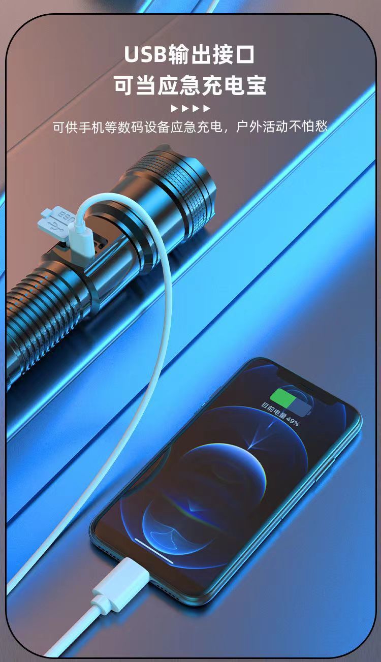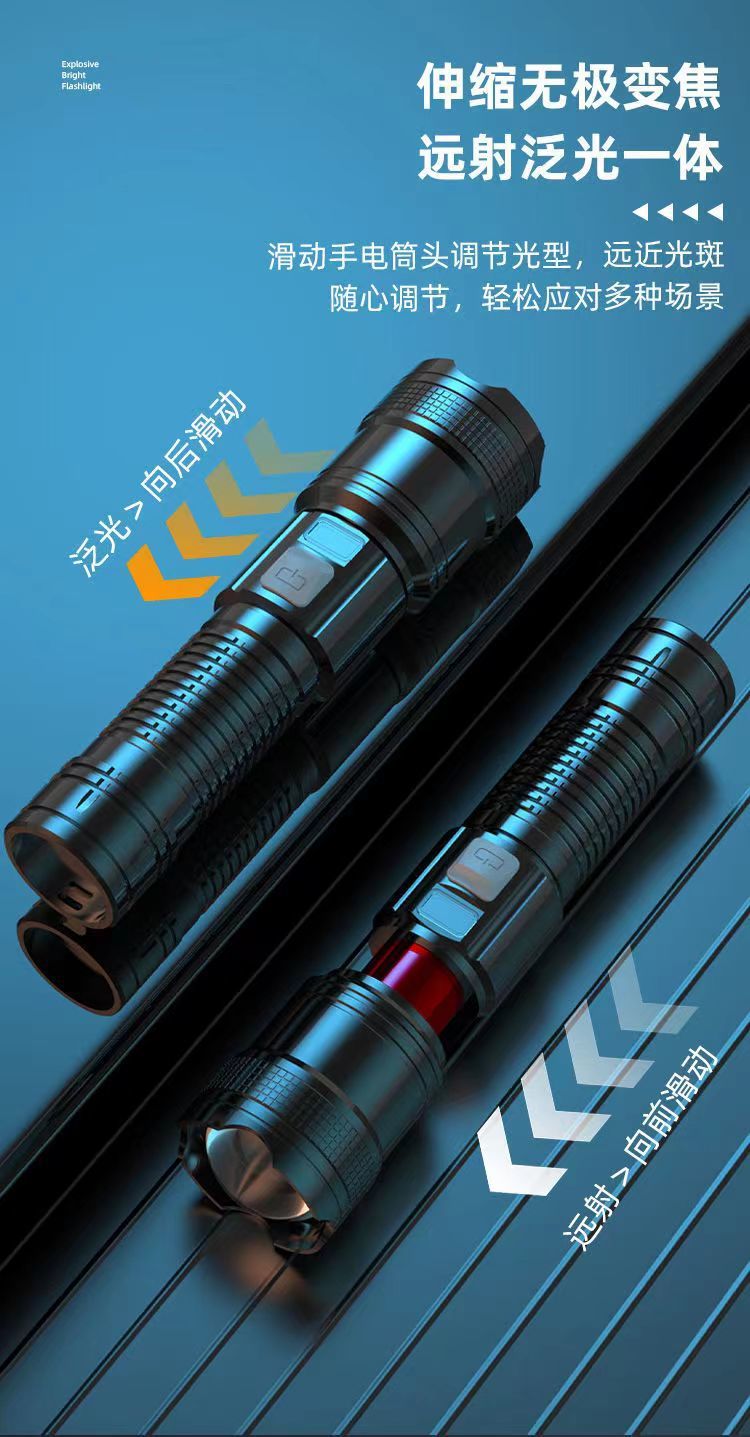 다기능 손전등 충전식 휴대용 지능형 디지털 폭발 볼륨 롱 샷 줌 USB 슈퍼 밝은 손전등