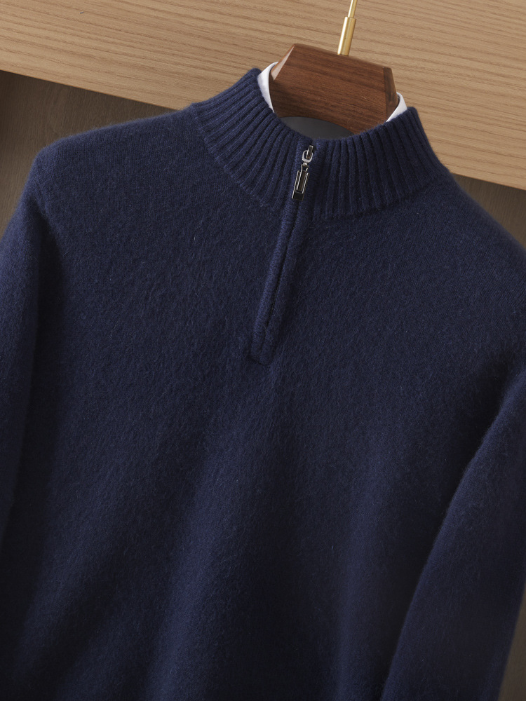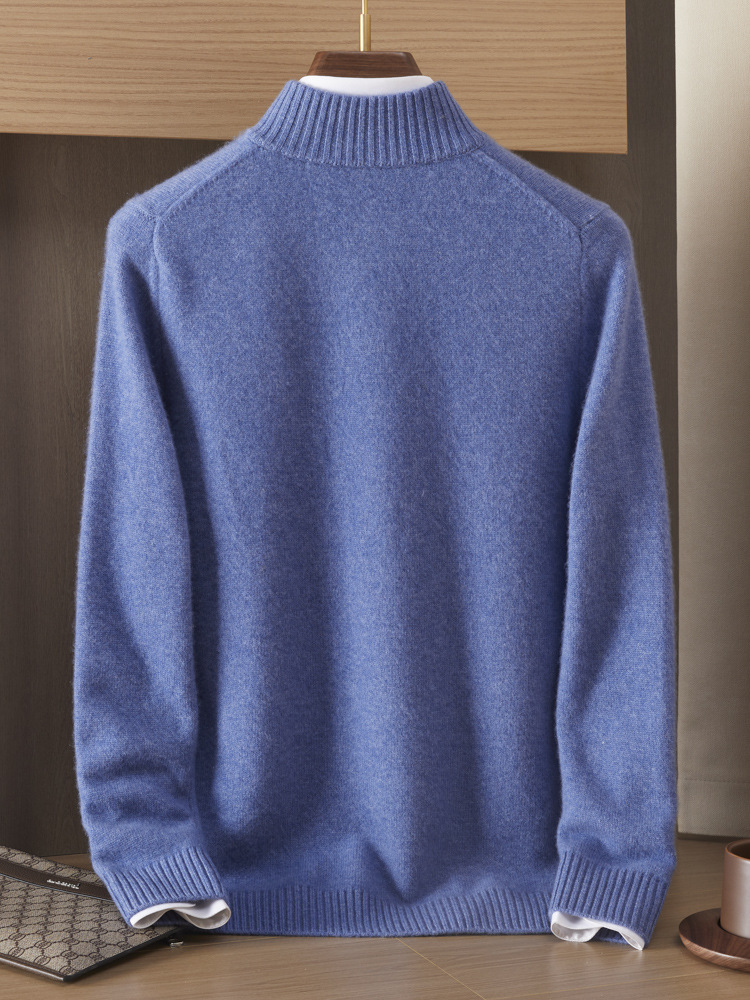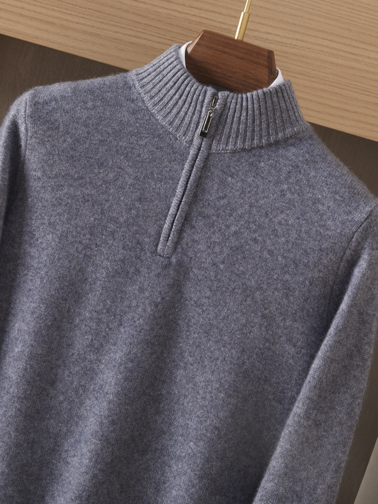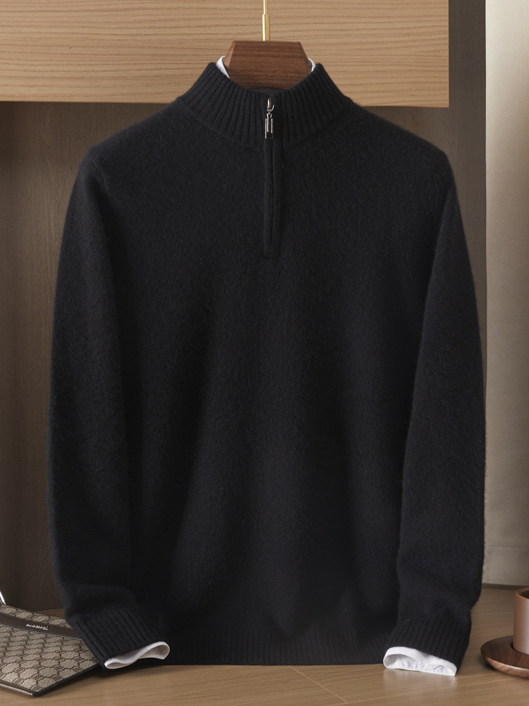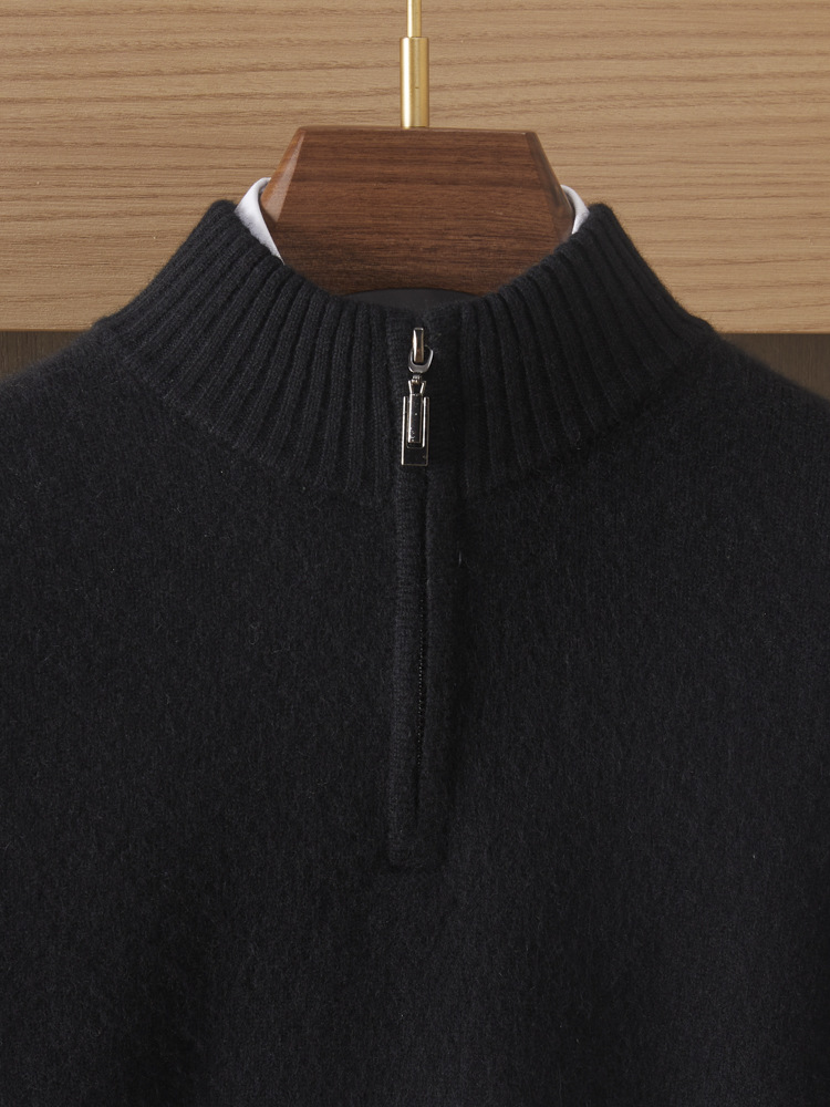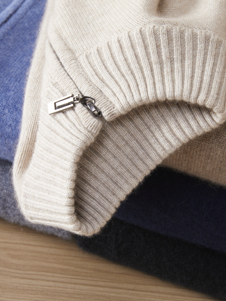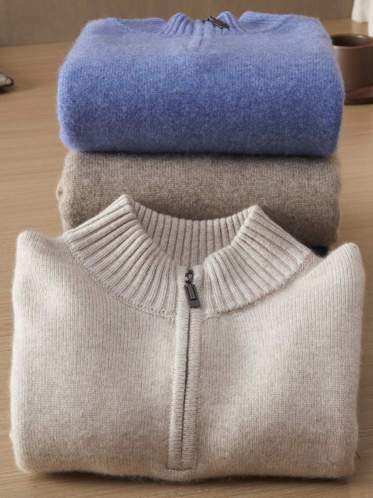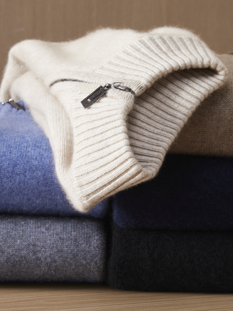가을 겨울 신상 베이비 캐시미어 스웨터 남성용 반하이넥 지퍼 스웨터 따뜻한 니트 두꺼운 베이스 레이어 상의