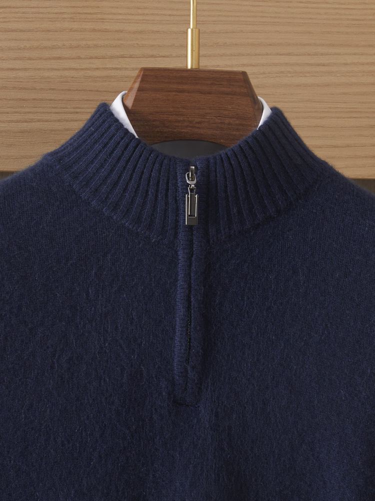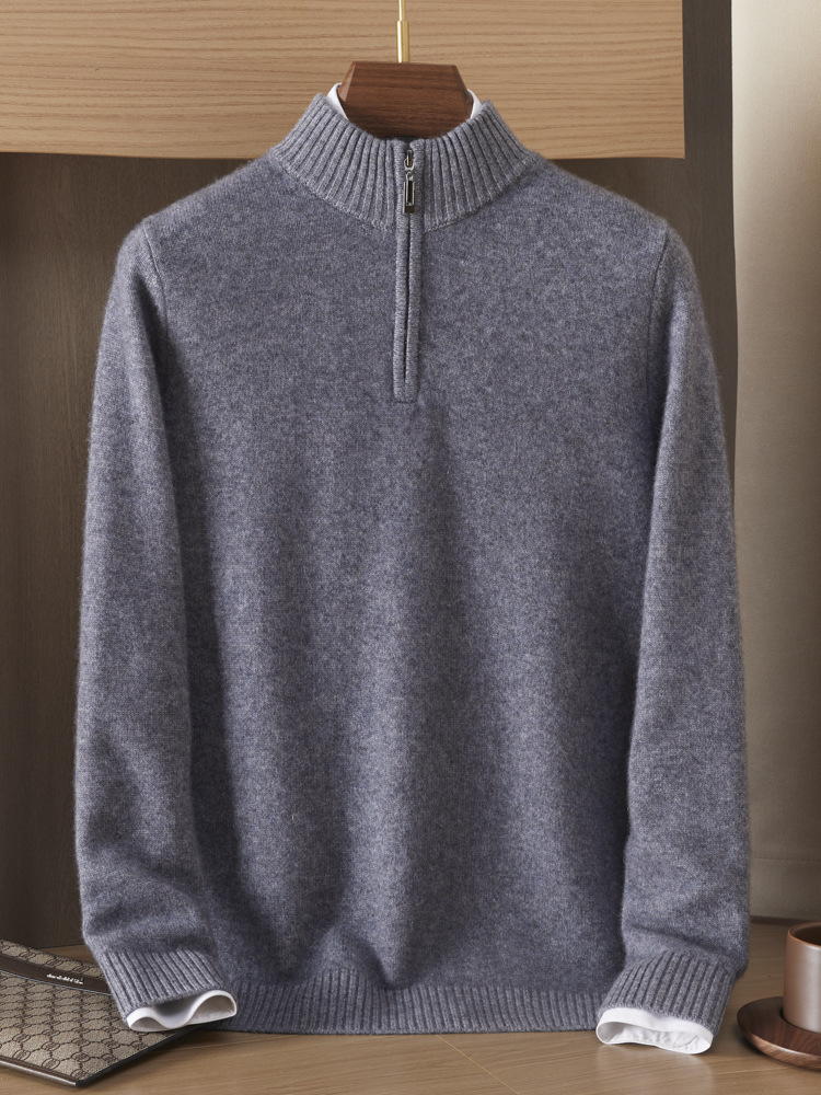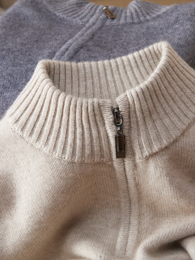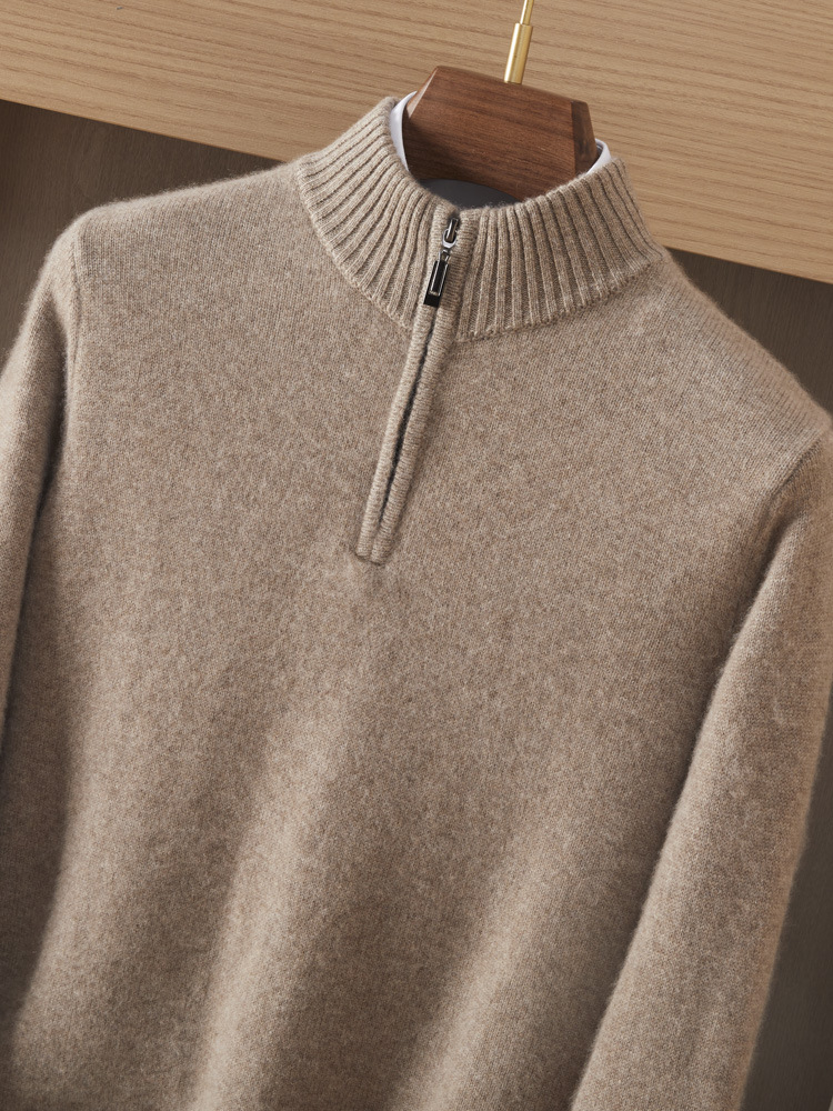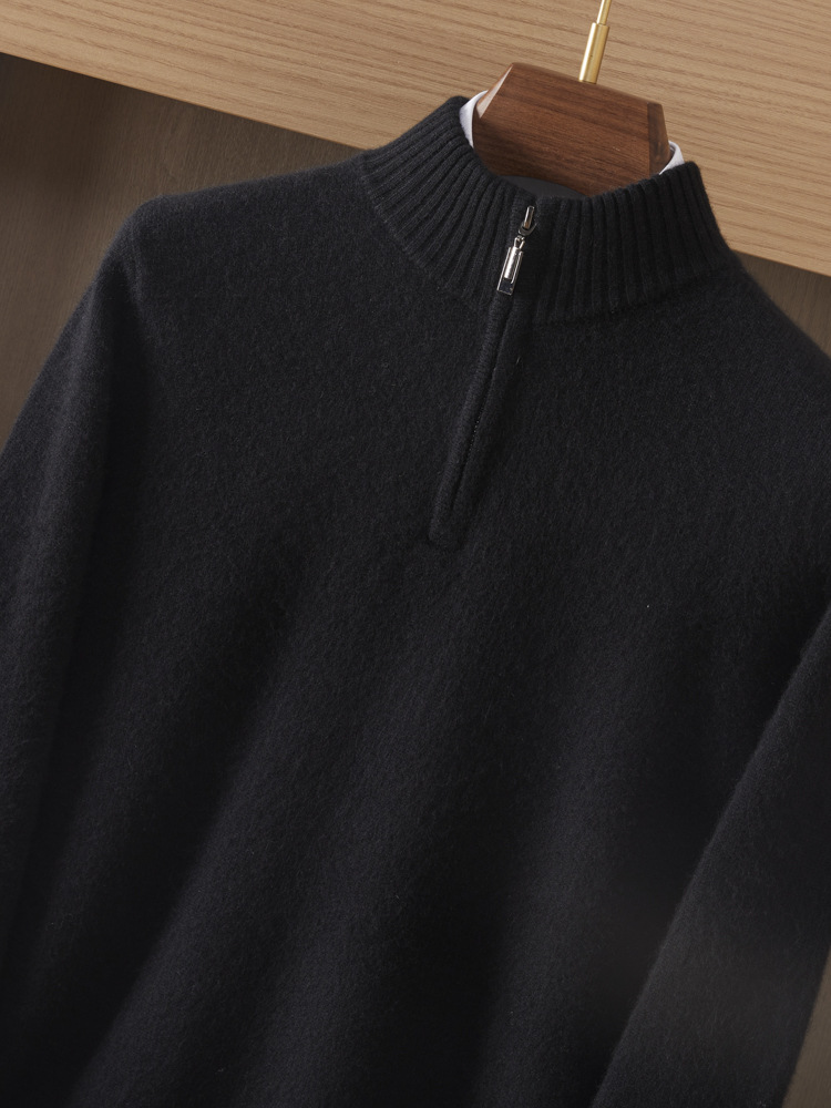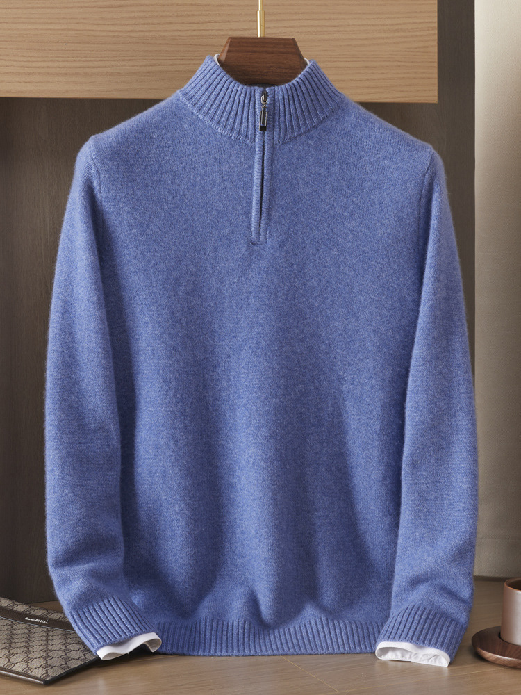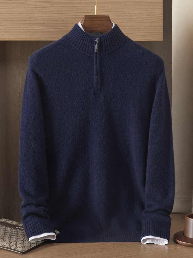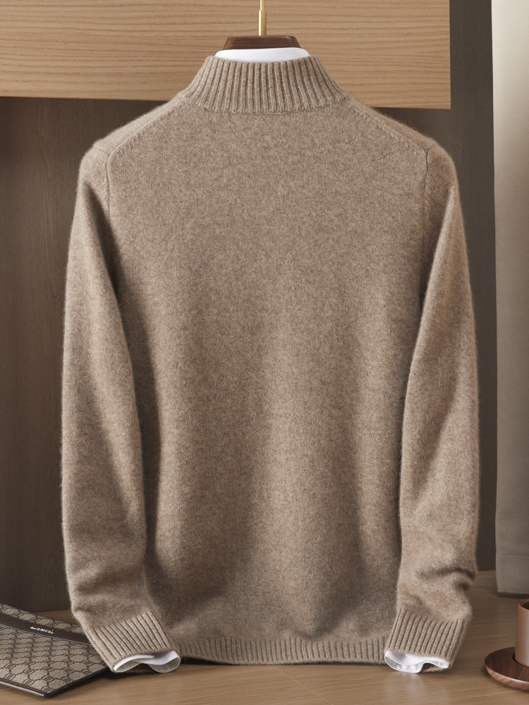 가을 겨울 신상 베이비 캐시미어 스웨터 남성용 반하이넥 지퍼 스웨터 따뜻한 니트 두꺼운 베이스 레이어 상의