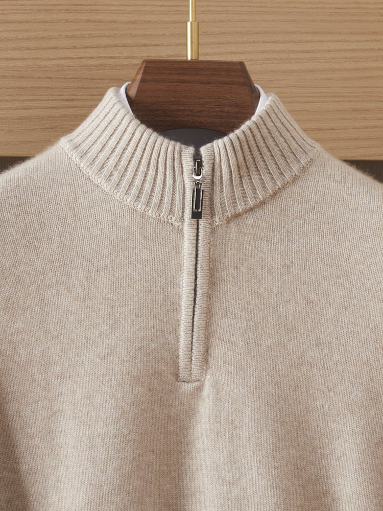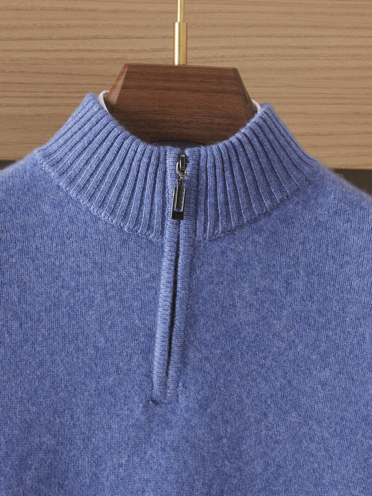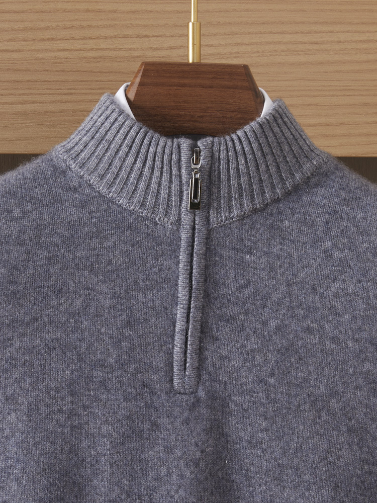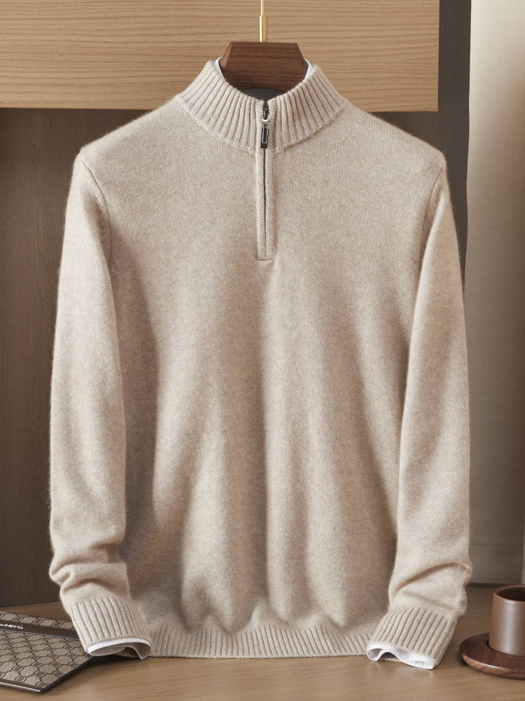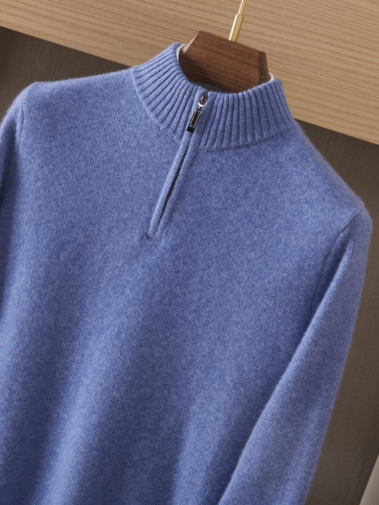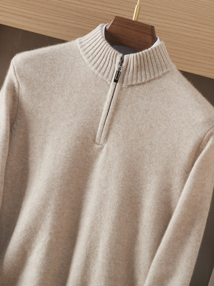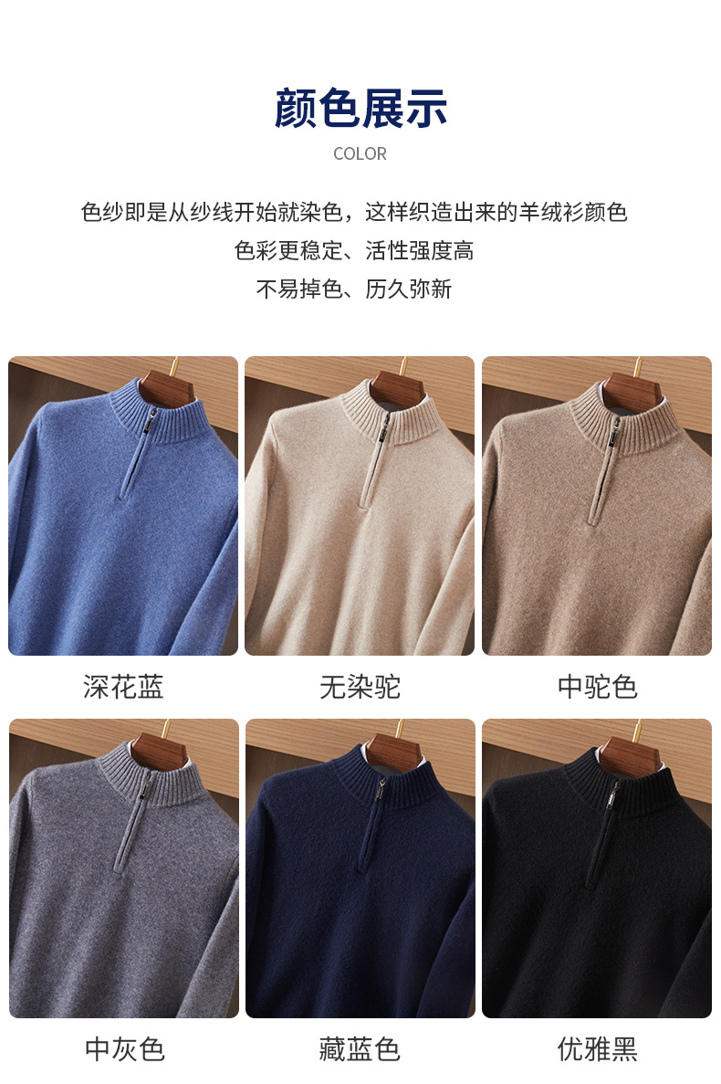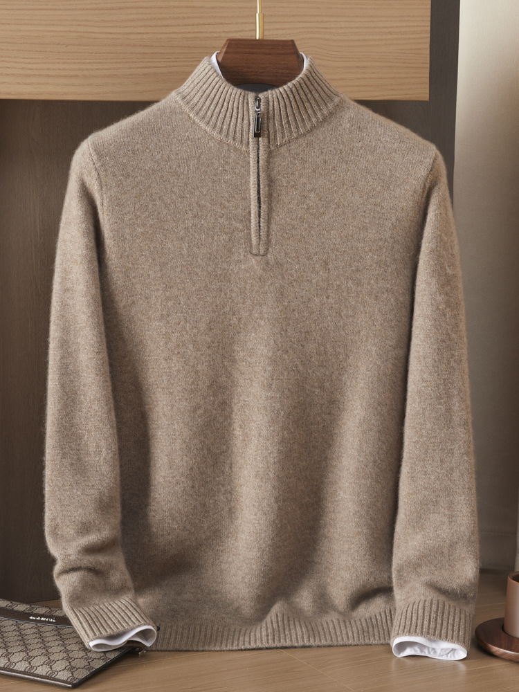 가을 겨울 신상 베이비 캐시미어 스웨터 남성용 반하이넥 지퍼 스웨터 따뜻한 니트 두꺼운 베이스 레이어 상의