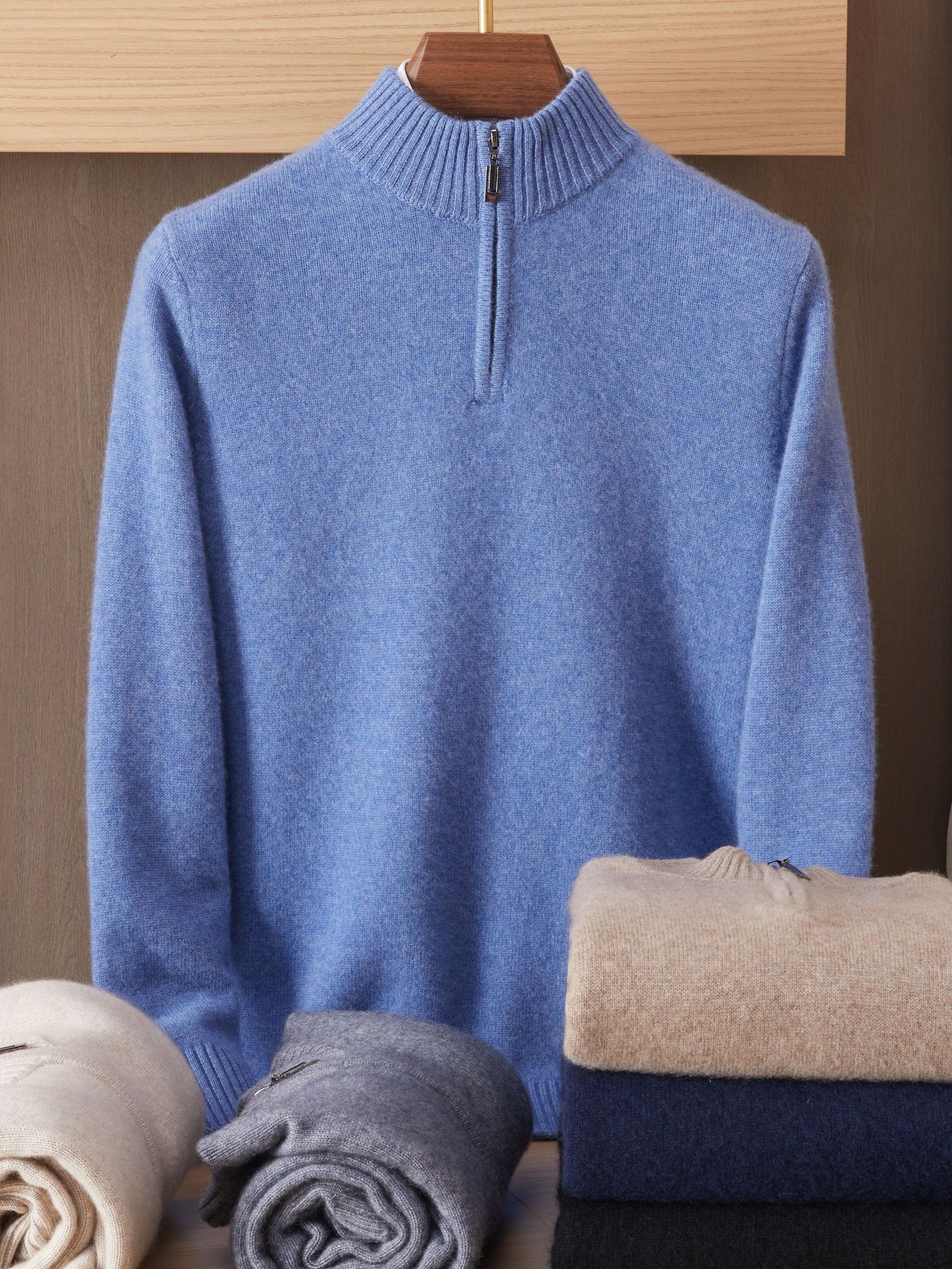 가을 겨울 신상 베이비 캐시미어 스웨터 남성용 반하이넥 지퍼 스웨터 따뜻한 니트 두꺼운 베이스 레이어 상의스토어 가기