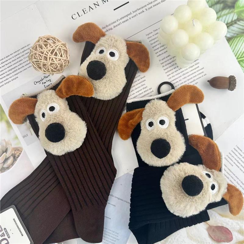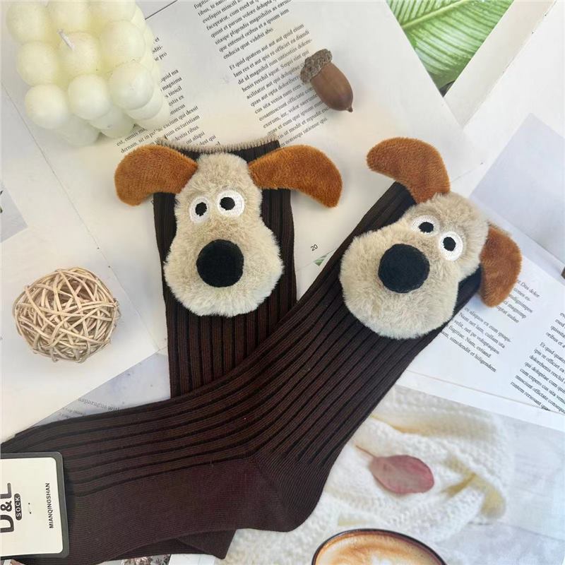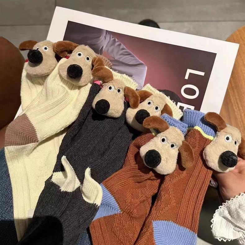 귀여운 리더 개 인형 쥬얼리 더블 니들 코튼 양말 어린이 미드 하이 Ins 만화 귀여운 온라인 연예인 조수