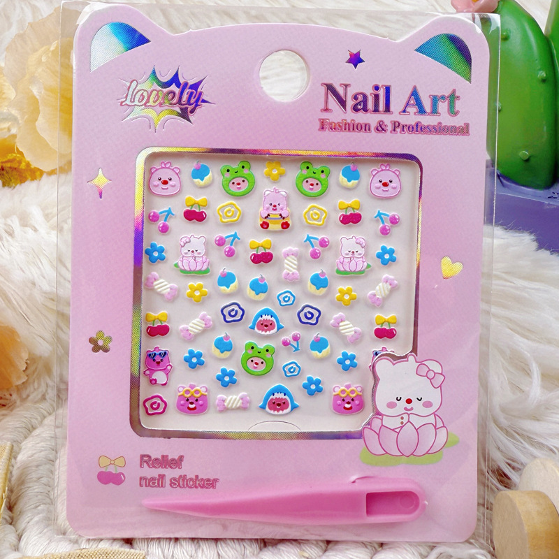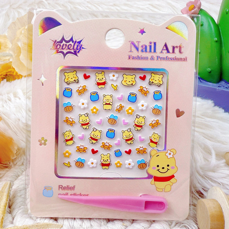 5D 네일 스티커 어린이 만화 산리오 메로 티 네일 스티커 스티치 엠보싱 방수 네일 아트 스티커