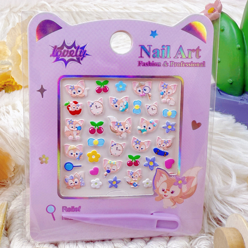 5D 네일 스티커 어린이 만화 산리오 메로 티 네일 스티커 스티치 엠보싱 방수 네일 아트 스티커스토어 가기