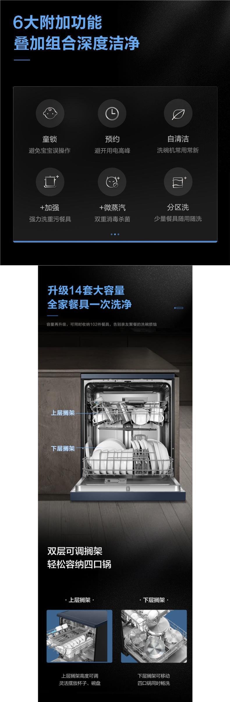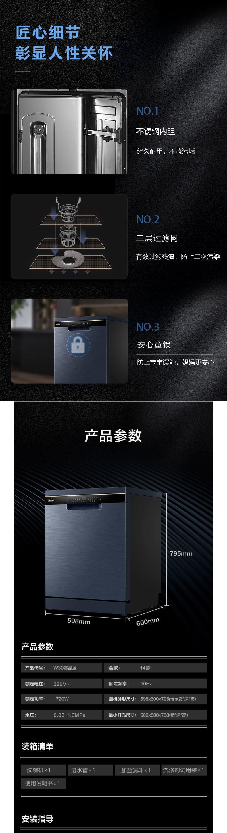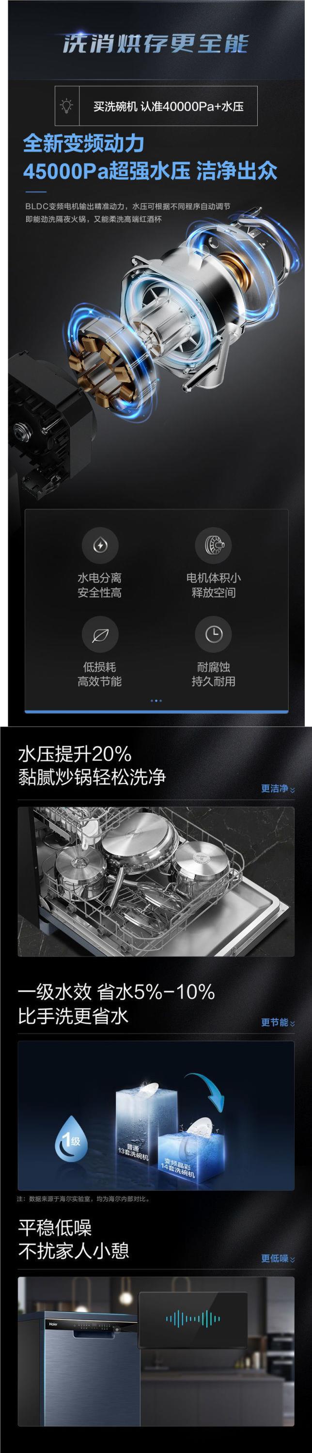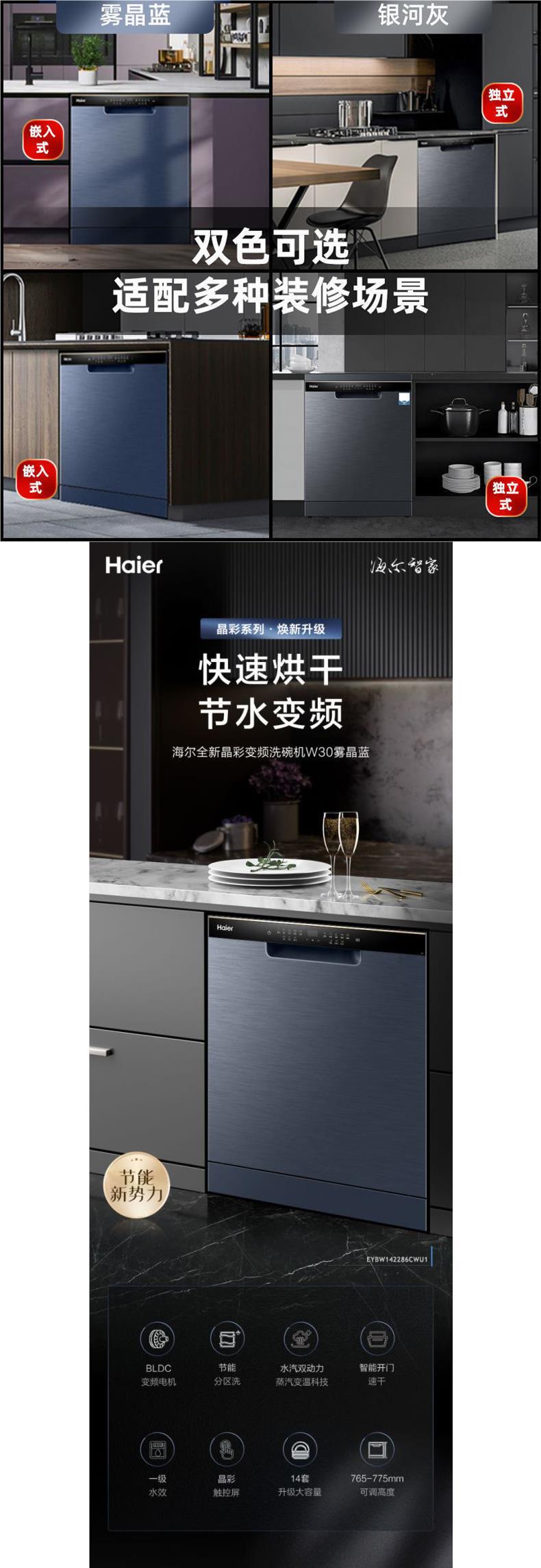 Haier 인버터 내장형 식기 세척기 업그레이드 크리스탈 컬러 완전 자동 구역 가정용 14 세트 EYBW142286CWU1스토어 가기