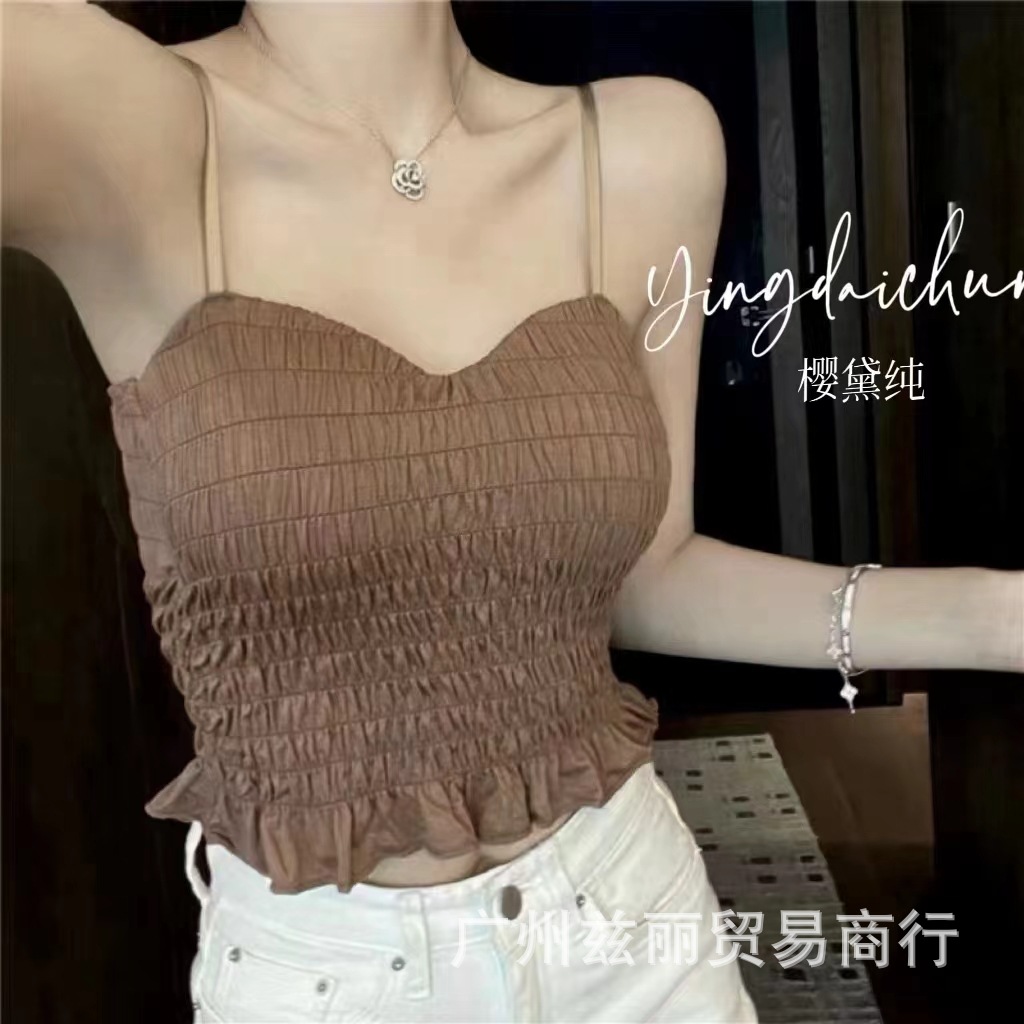 순수한 스파이스 소녀 패션 Bottoming Camisole 여성 벨트 니트 여름 가슴 포장 아름다운 등 알몸 허리 내부 탑 스트랩리스스토어 가기