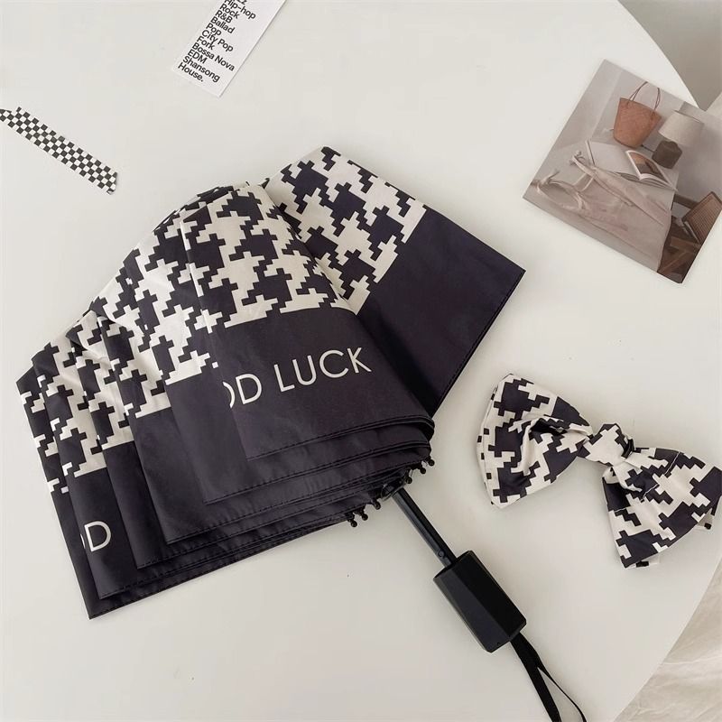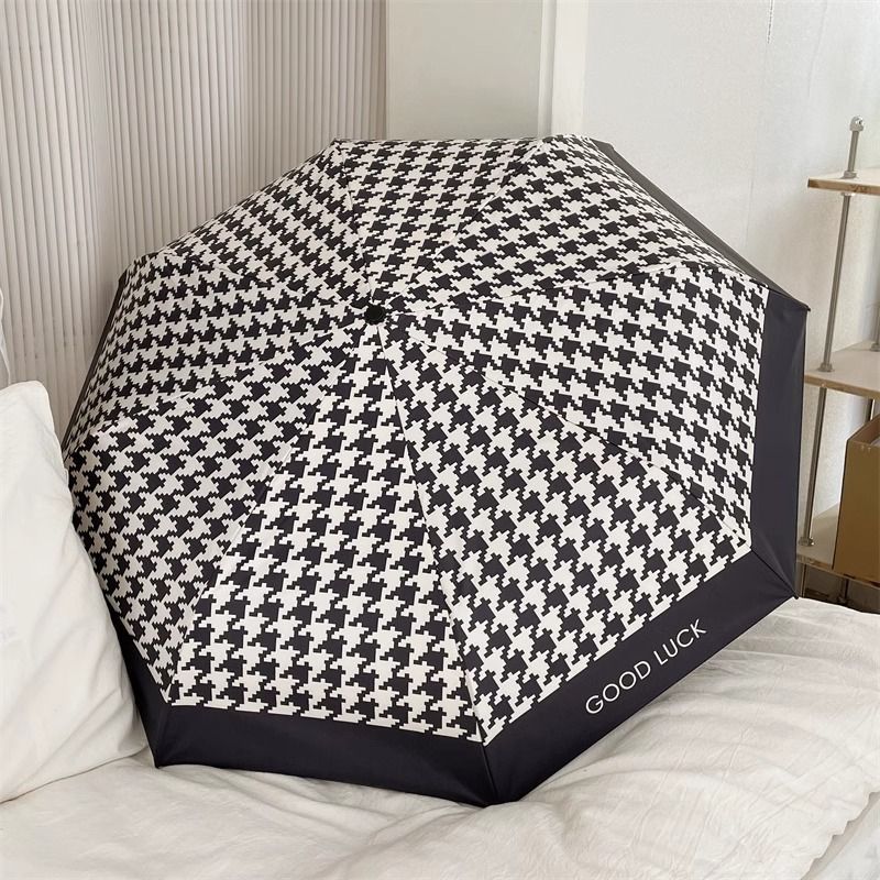 프랑스 레트로 하운스 투스 자동 접는 우산 여성의 맑고 비오는 이중 사용 태양 보호 자외선 보호 햇빛 검은 고무 우산