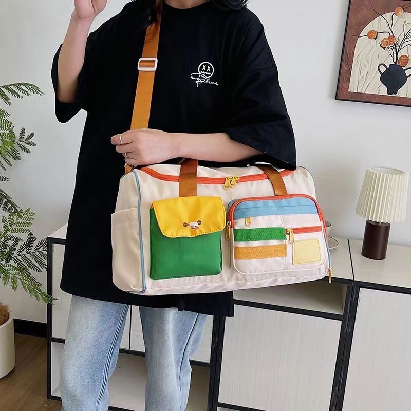 도파민 배색 크로스백 스포츠 피트니스 대용량 여행용 핸드백 캐주얼 단거리 출장 여행 가방