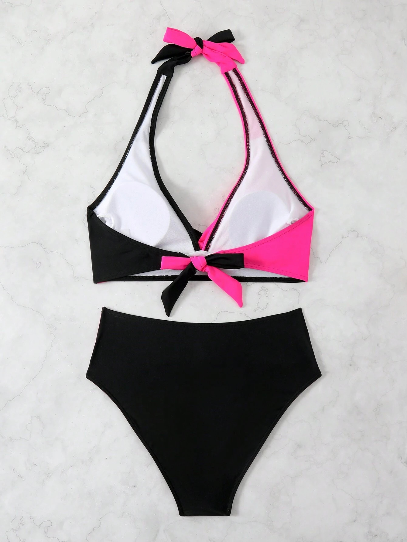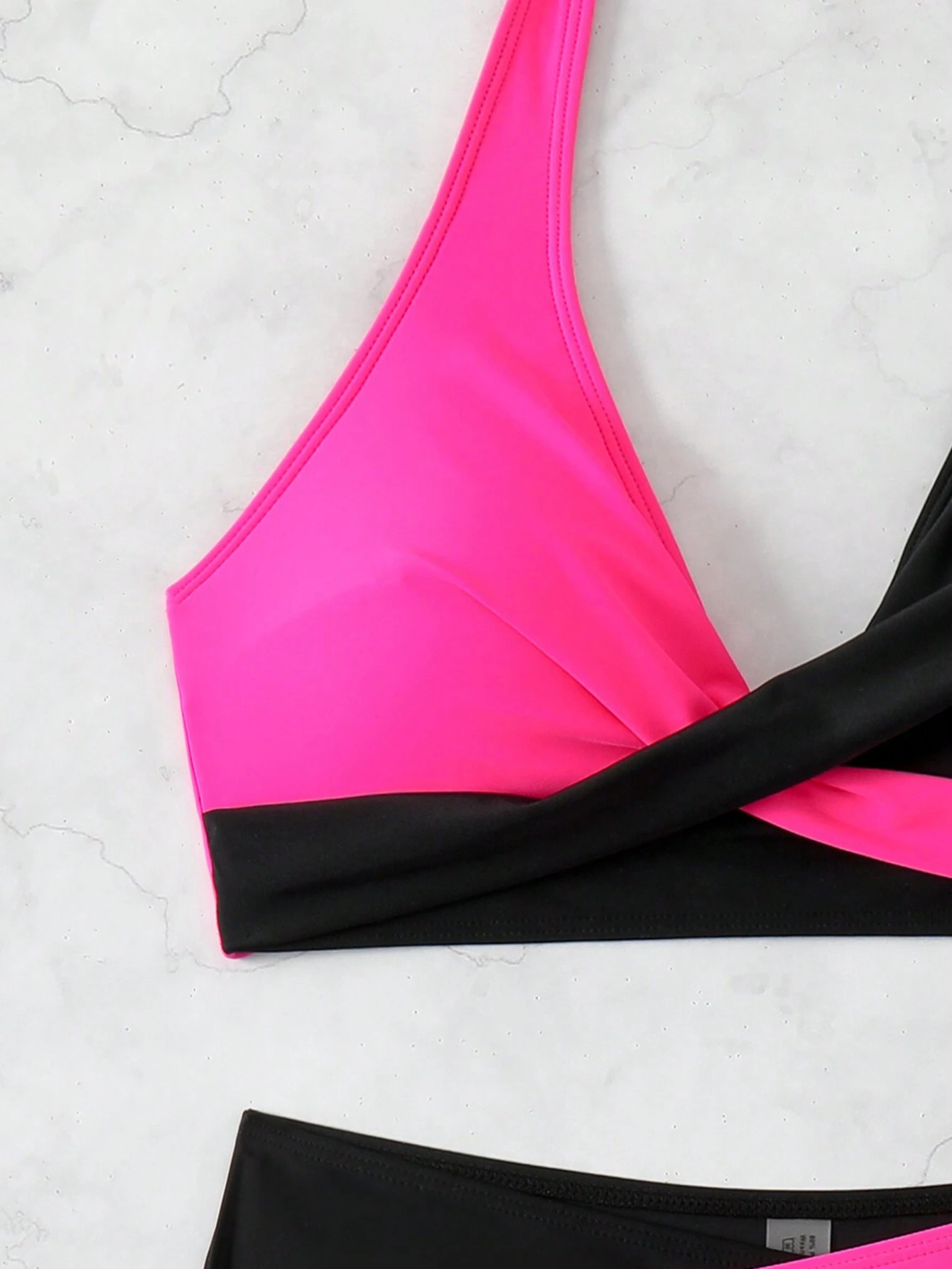 2025 새로운 대외 무역 소프트 백 가슴 크로스 섹시한 비키니 여름 해변 패션 컬러 매칭 아마존 폭발