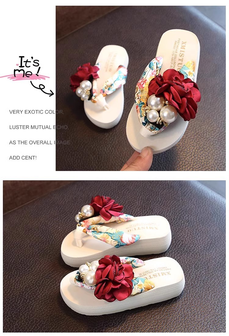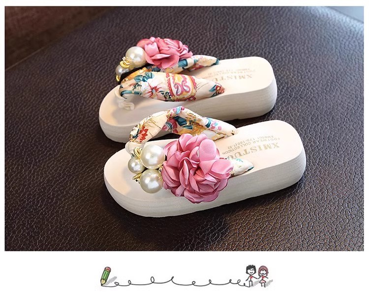 여름 새로운 미끄럼 방지 어린이 플립 플롭 소녀 패션 비치 슈즈 플립 플롭 여성 꽃 슬리퍼 여성용 아우터웨어