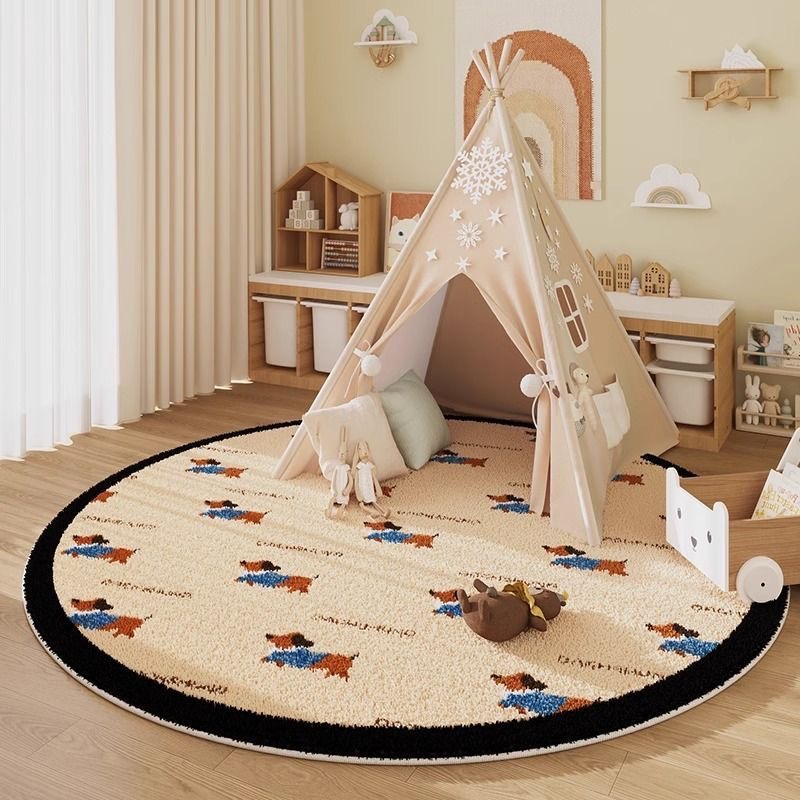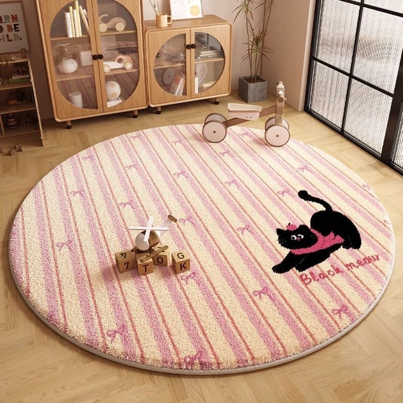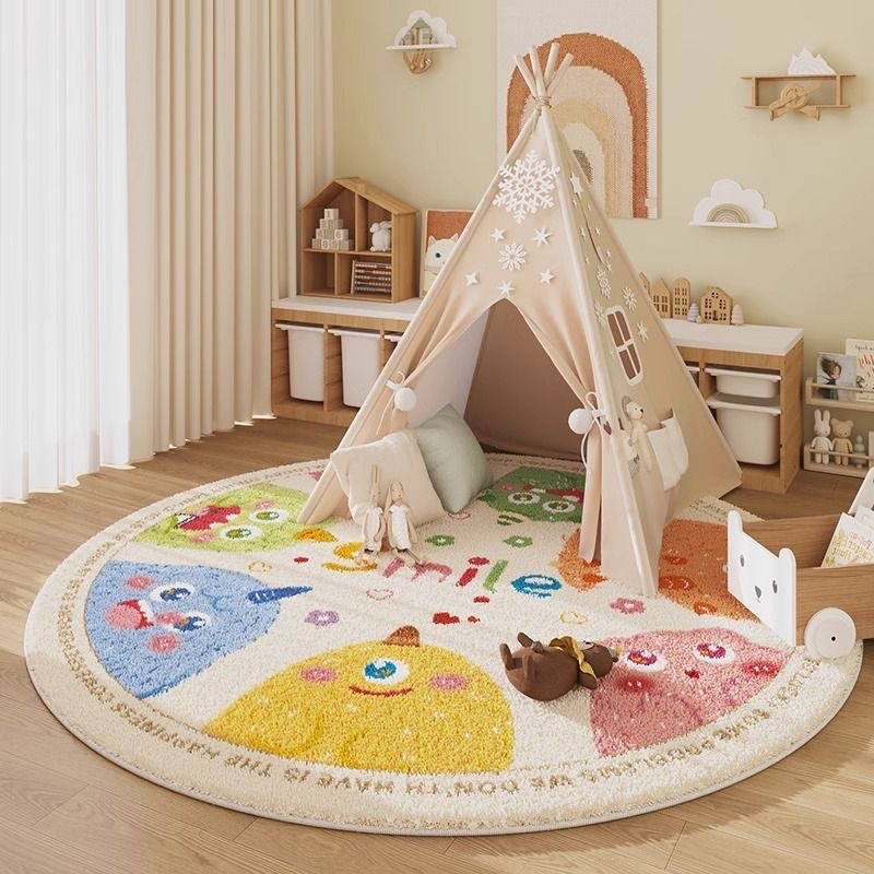 어린이 방 라운드 카펫 침실 침실 장식 바닥 매트 모방 캐시미어 등반 매트 학습 독서 공간 레이아웃 바닥 매트스토어 가기