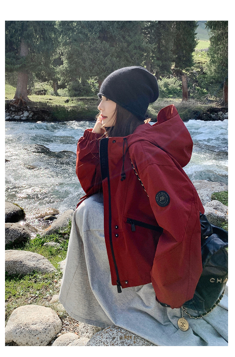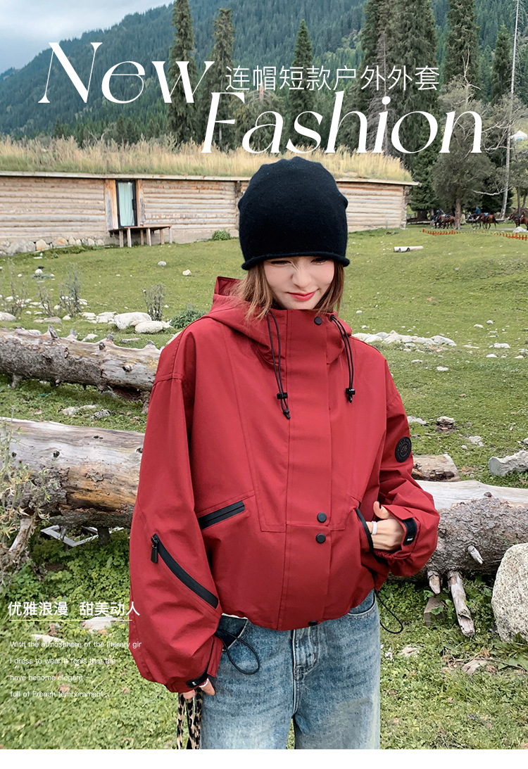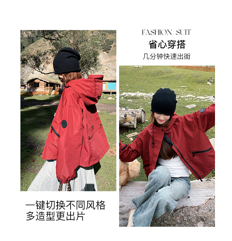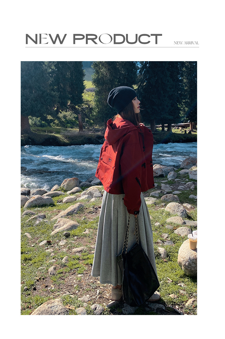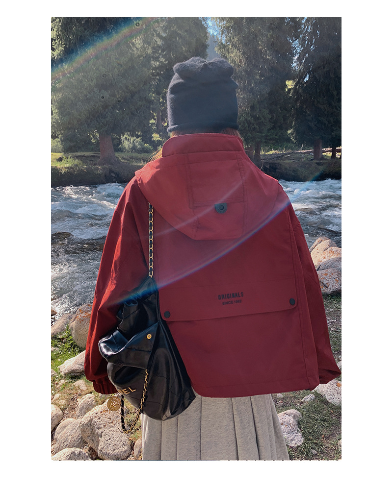 미국식 프라이드 스트리트 레드 후드 충전 의류 여성 가을 하이 엔드 워크 코트 코트 짧은 재킷 탑스토어 가기