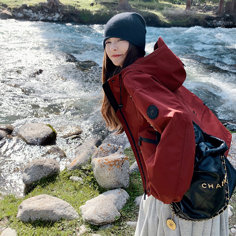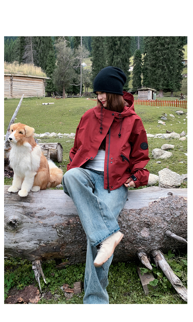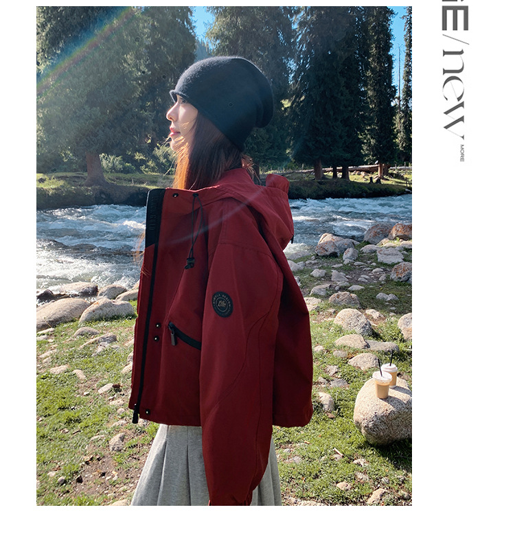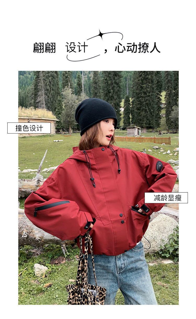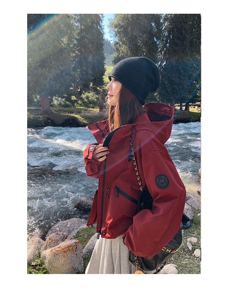 미국식 프라이드 스트리트 레드 후드 충전 의류 여성 가을 하이 엔드 워크 코트 코트 짧은 재킷 탑스토어 가기