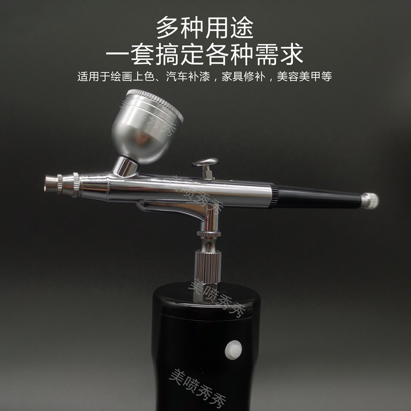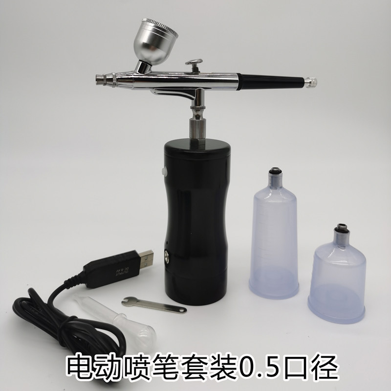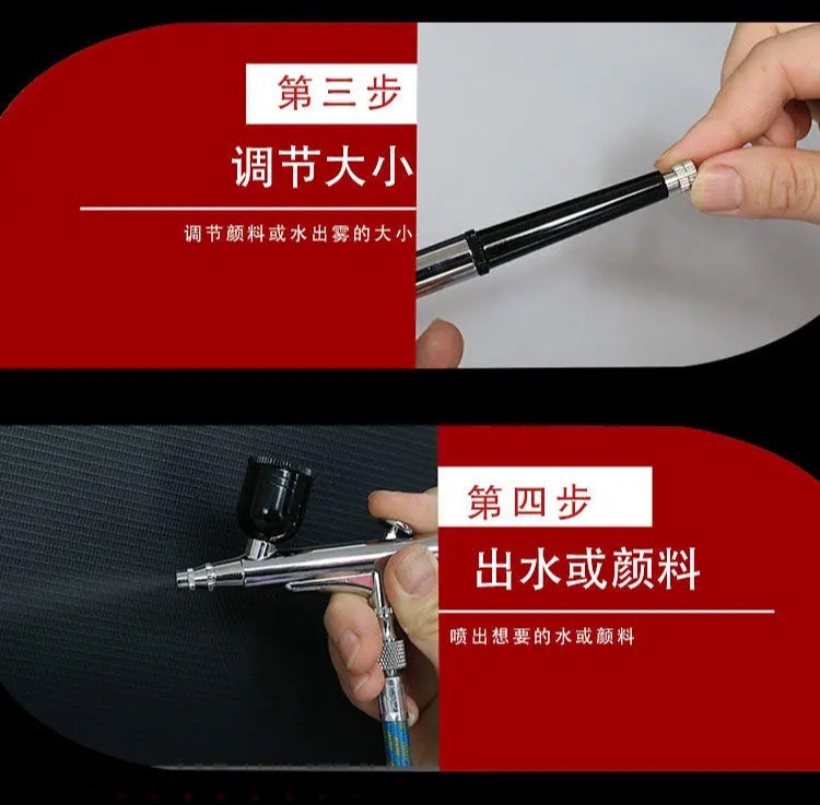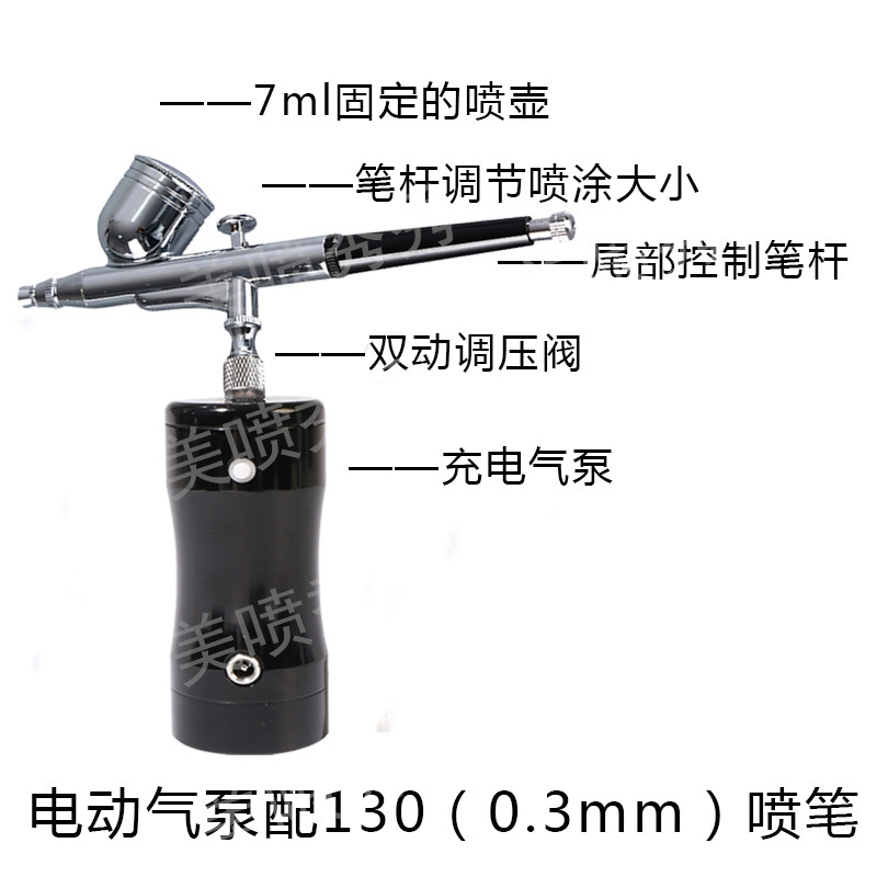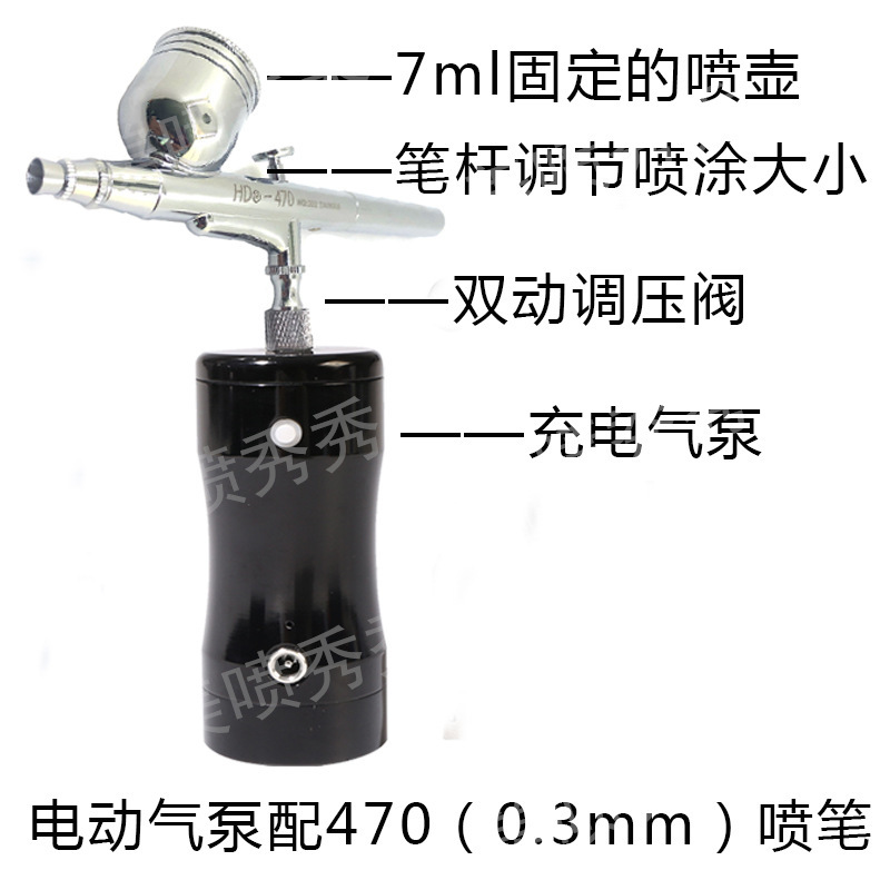 提示:手持部分的气泵是电子产品不能用水清洗、泡水或进水,否则将影响气泵正常工作使用,不支持售后服务的。上半部分喷笔可以旋下来浸泡或清洗残留的颜料。