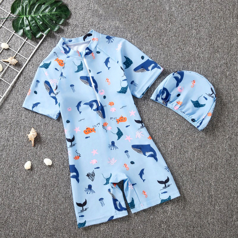 2025 년 여름 새 어린이 수영복 여아 중소 어린이 수영복 수영복 만화 소년 반팔 세트