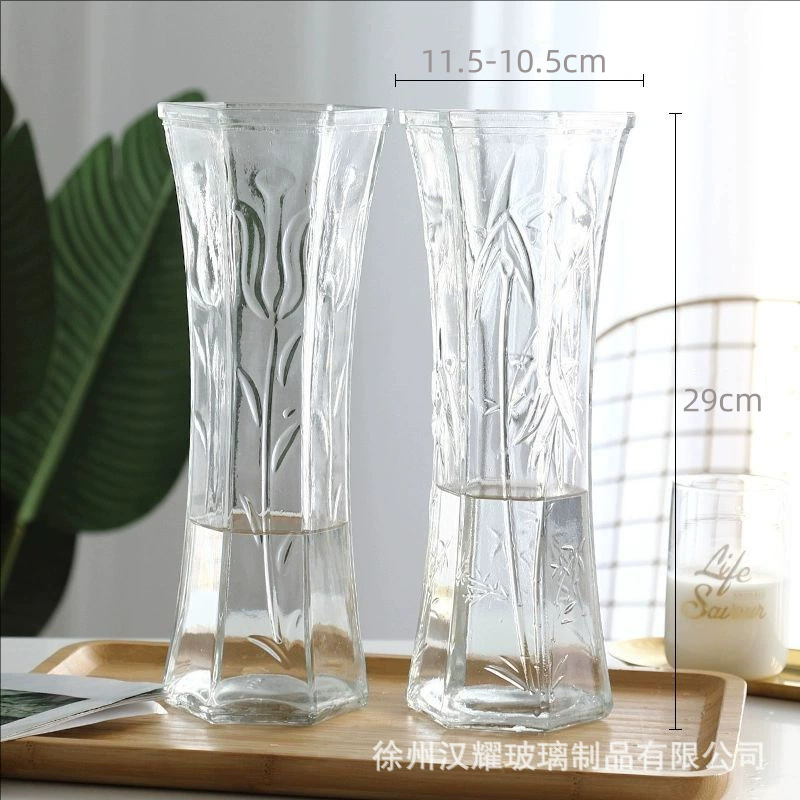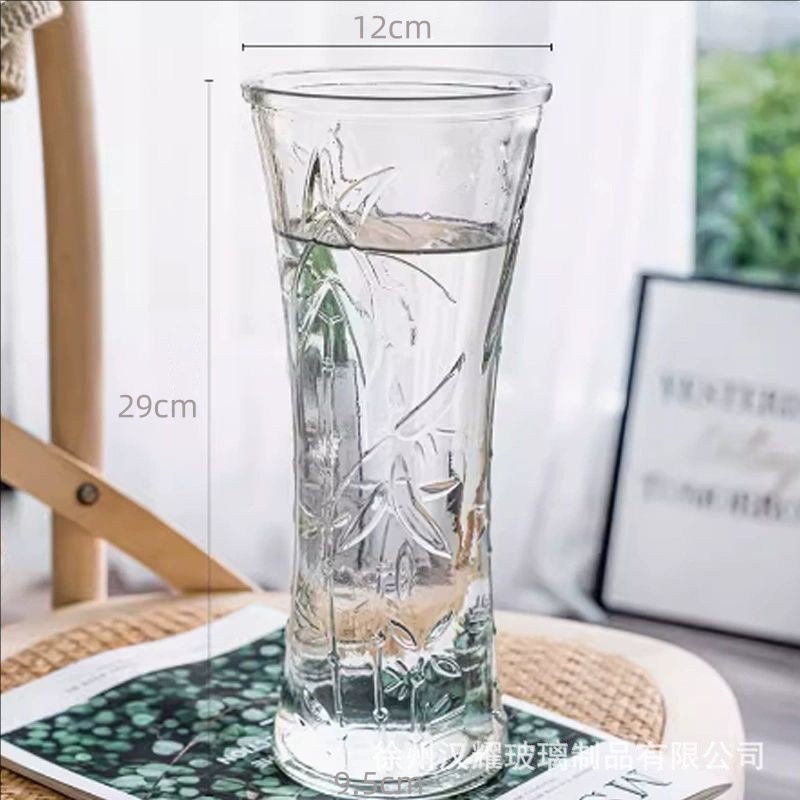 초대형 간단한 유리 꽃병 투명한 물 키우기 북유럽 스타일 꽃병 홈 거실을위한 창조적 인 풍부한 대나무 꽃 장식품