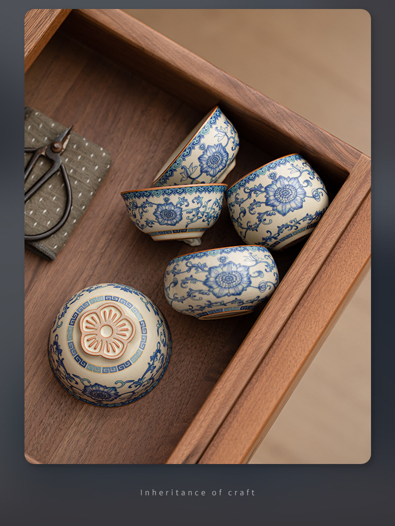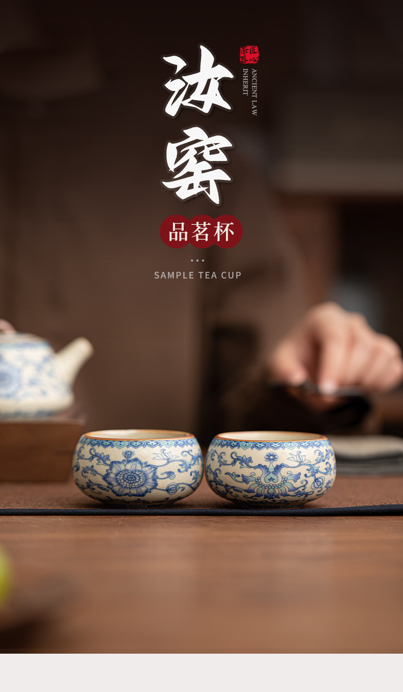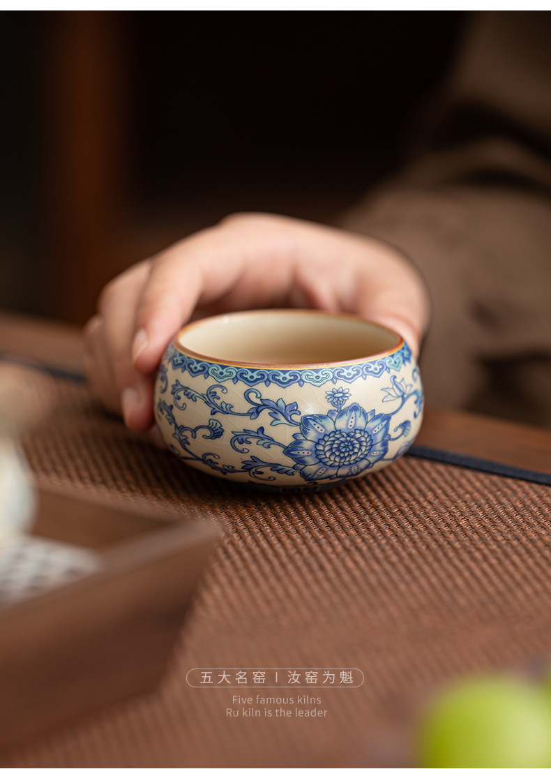 Ru Kiln 파란색과 꽃 Pu'er 컵 티 컵 싱글 세라믹 마스터 컵 개인 간단한 티 컵 쿵푸 티 세트
