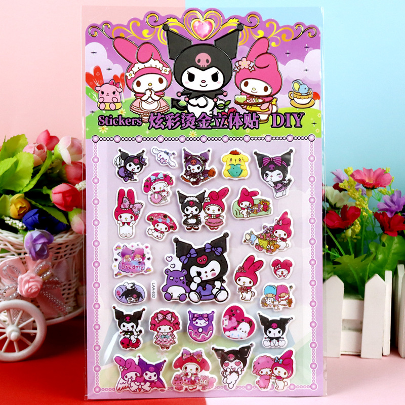 새로운 쿠로미 멜로디 냉동 공주 원피스 업 공룡 초석 카피발라 버블 스티커