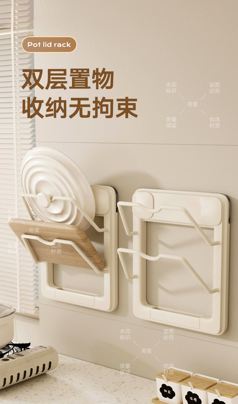 석션 컵 주방 냄비 커버 랙 다기능 벽 커팅 보드 스토리지 랙 가정용 다층 벽 장착 스토리지 랙
