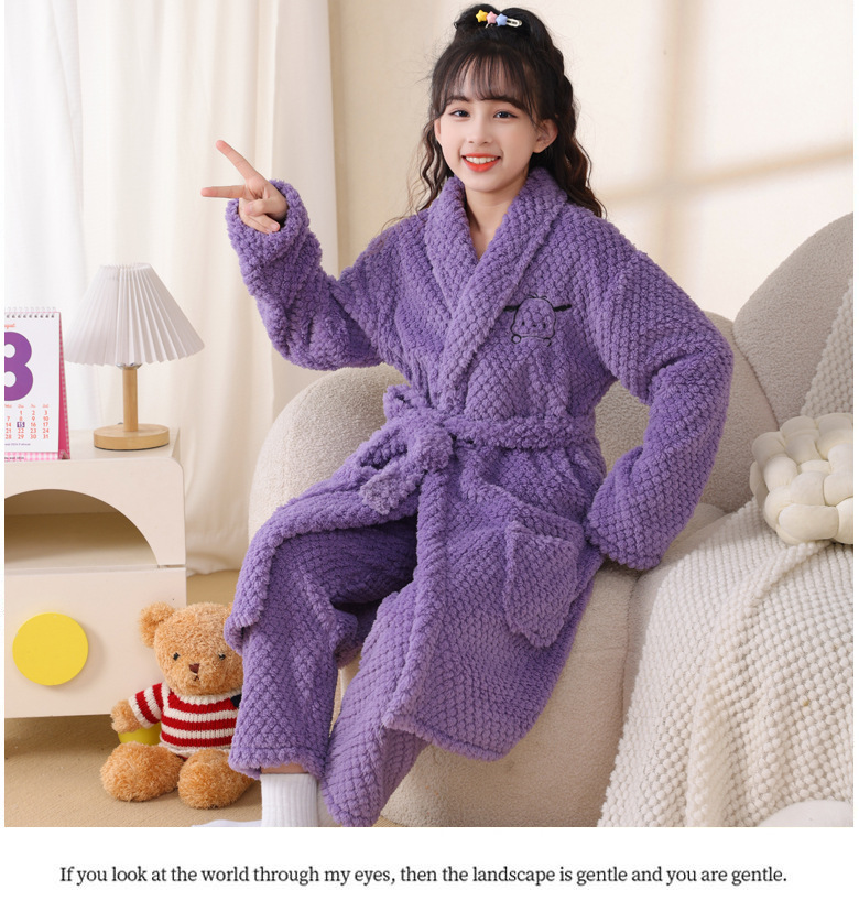 여자 나이트가운 산호 양털 가을과 겨울 두꺼운 목욕 가운 2025 새로운 어린이 플란넬 파자마 큰 어린이 집 옷스토어 가기
