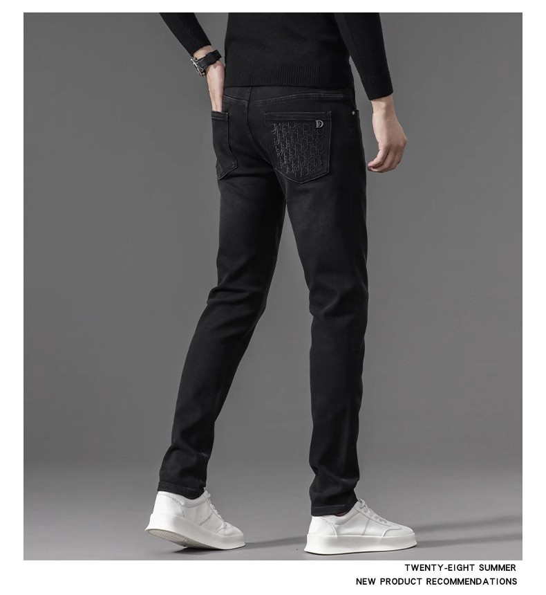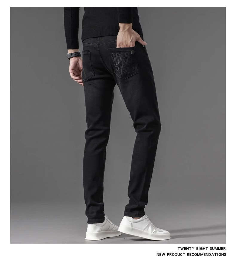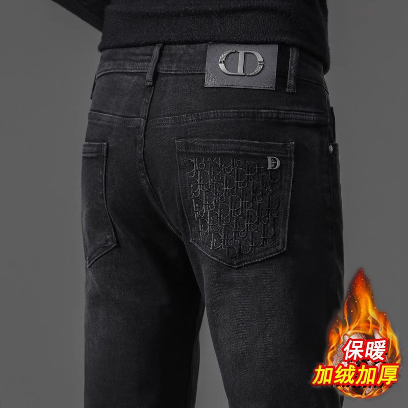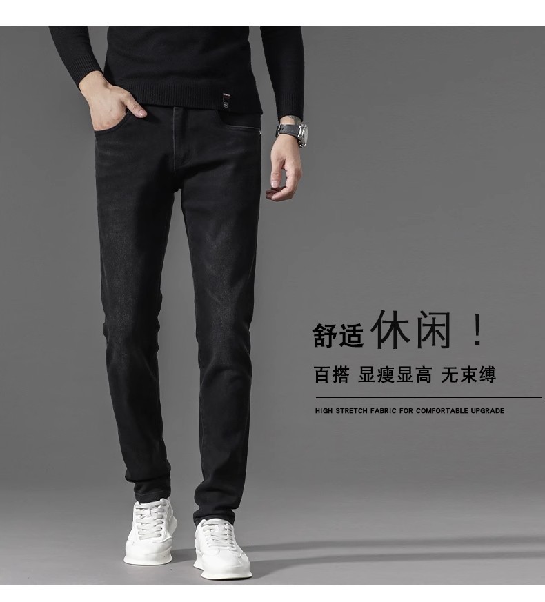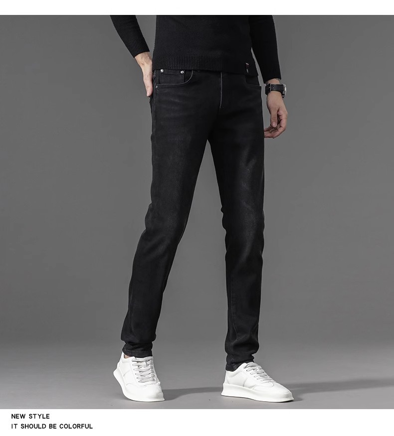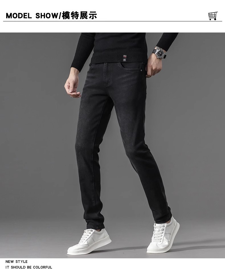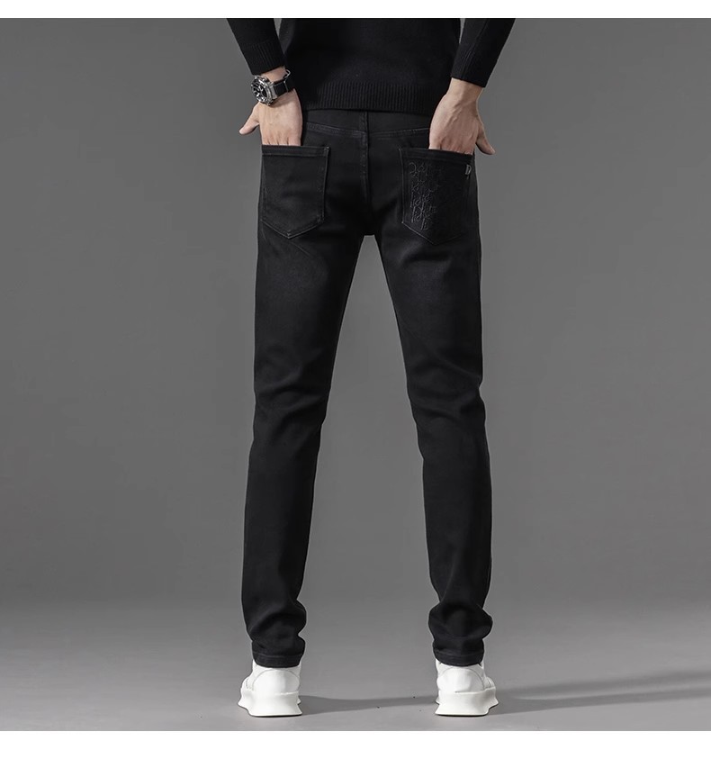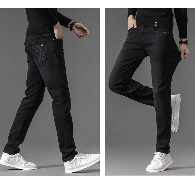 유럽 역 검은 청바지 남자의 가을과 겨울 기모 두꺼운 자수 하이 엔드 작은 스트레이트 스트레치 캐주얼 바지