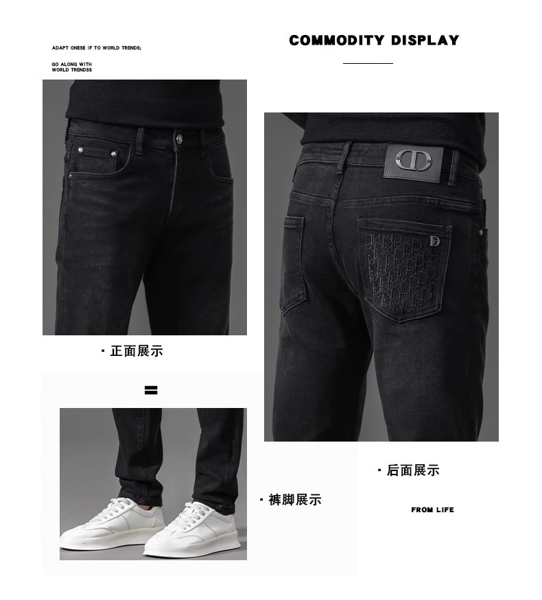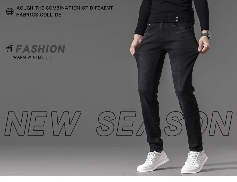 유럽 역 검은 청바지 남자의 가을과 겨울 기모 두꺼운 자수 하이 엔드 작은 스트레이트 스트레치 캐주얼 바지스토어 가기