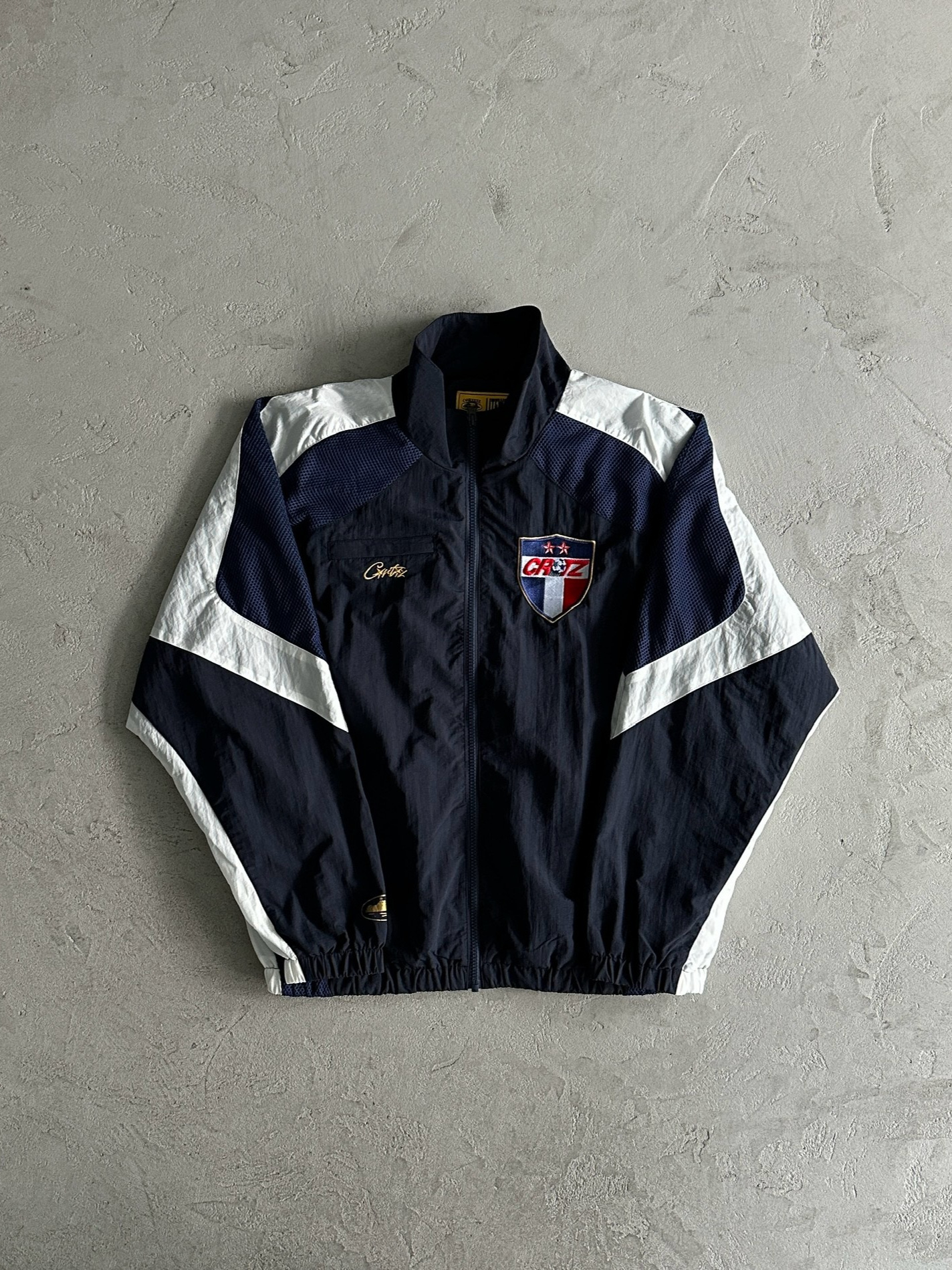고품질 인기 컬러 블록 자수 배지 스탠드 칼라 얇은 재킷 남성 트렌디 가을 스포츠 정장 재킷스토어 가기