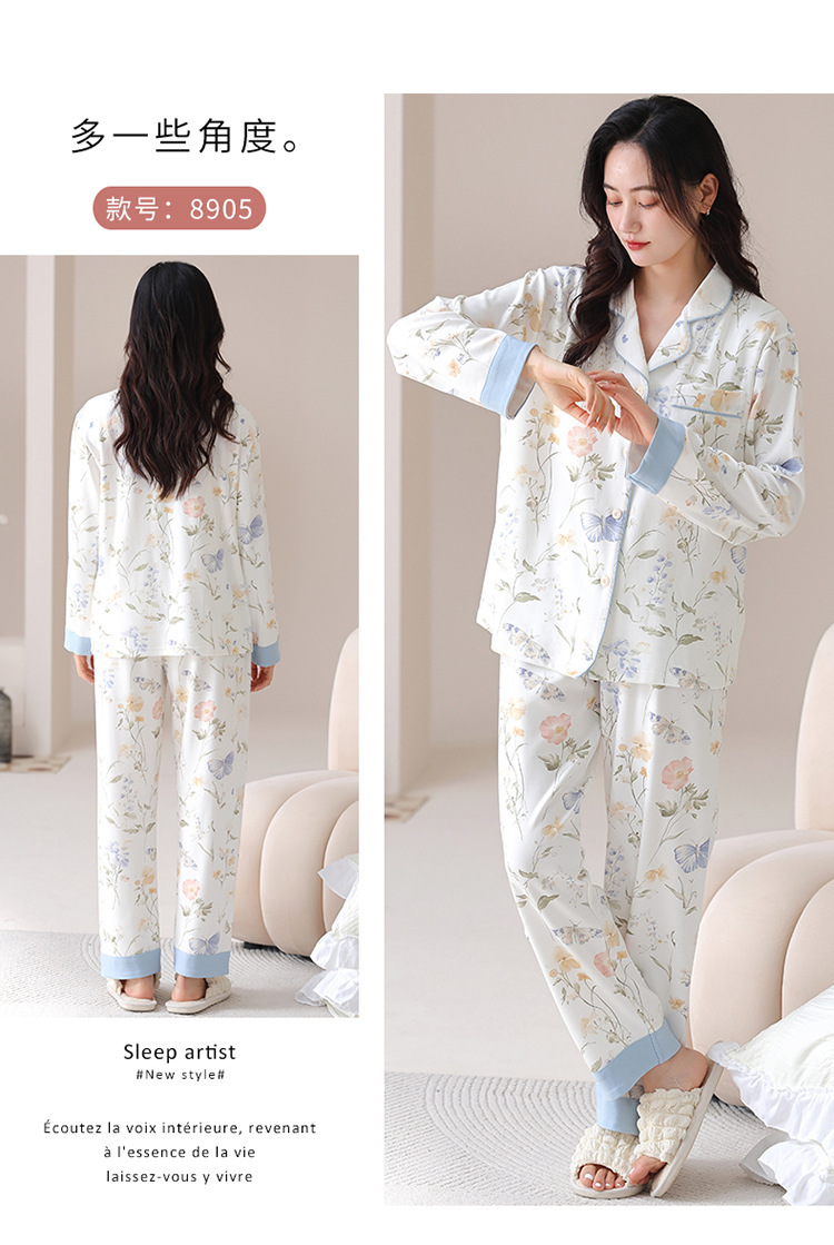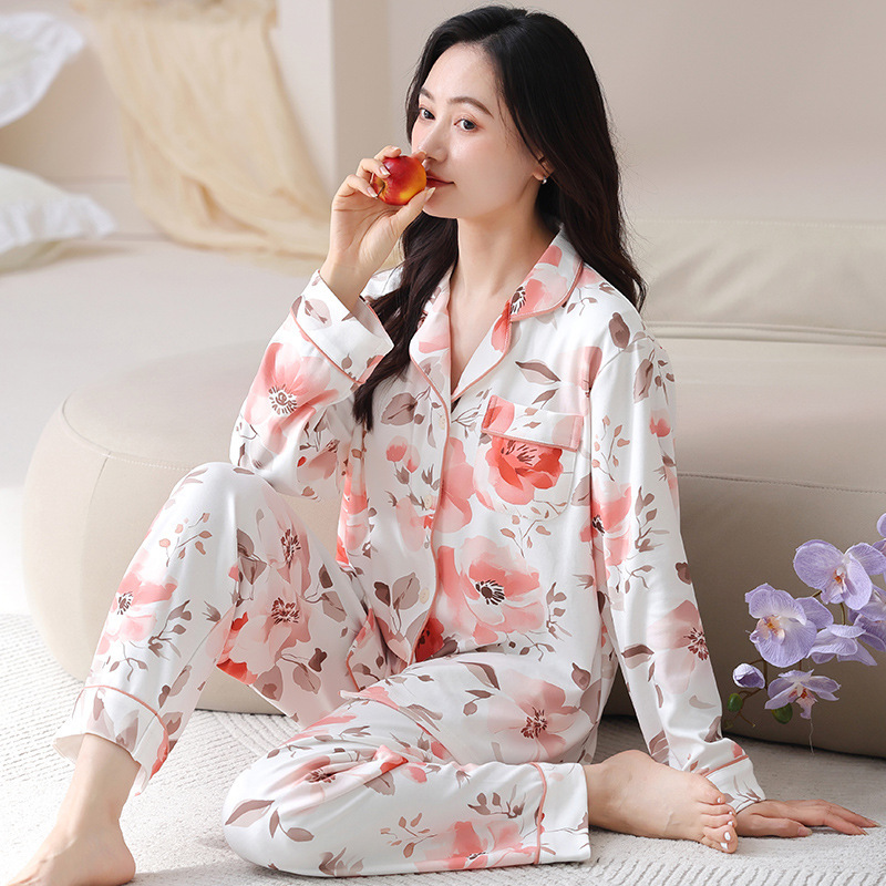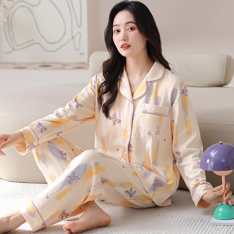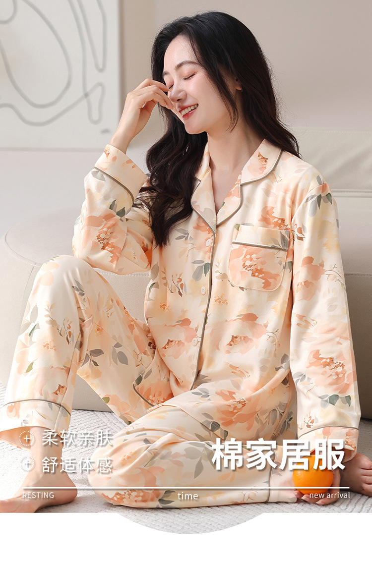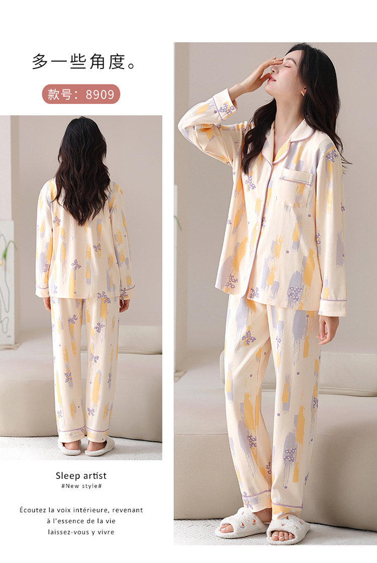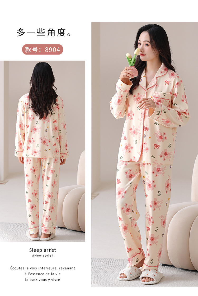 니트 코튼 파자마 여성용 봄과 가을 긴팔 카디건 세트 플러스 사이즈 느슨한 겉옷 중년 여성용 홈 의류스토어 가기